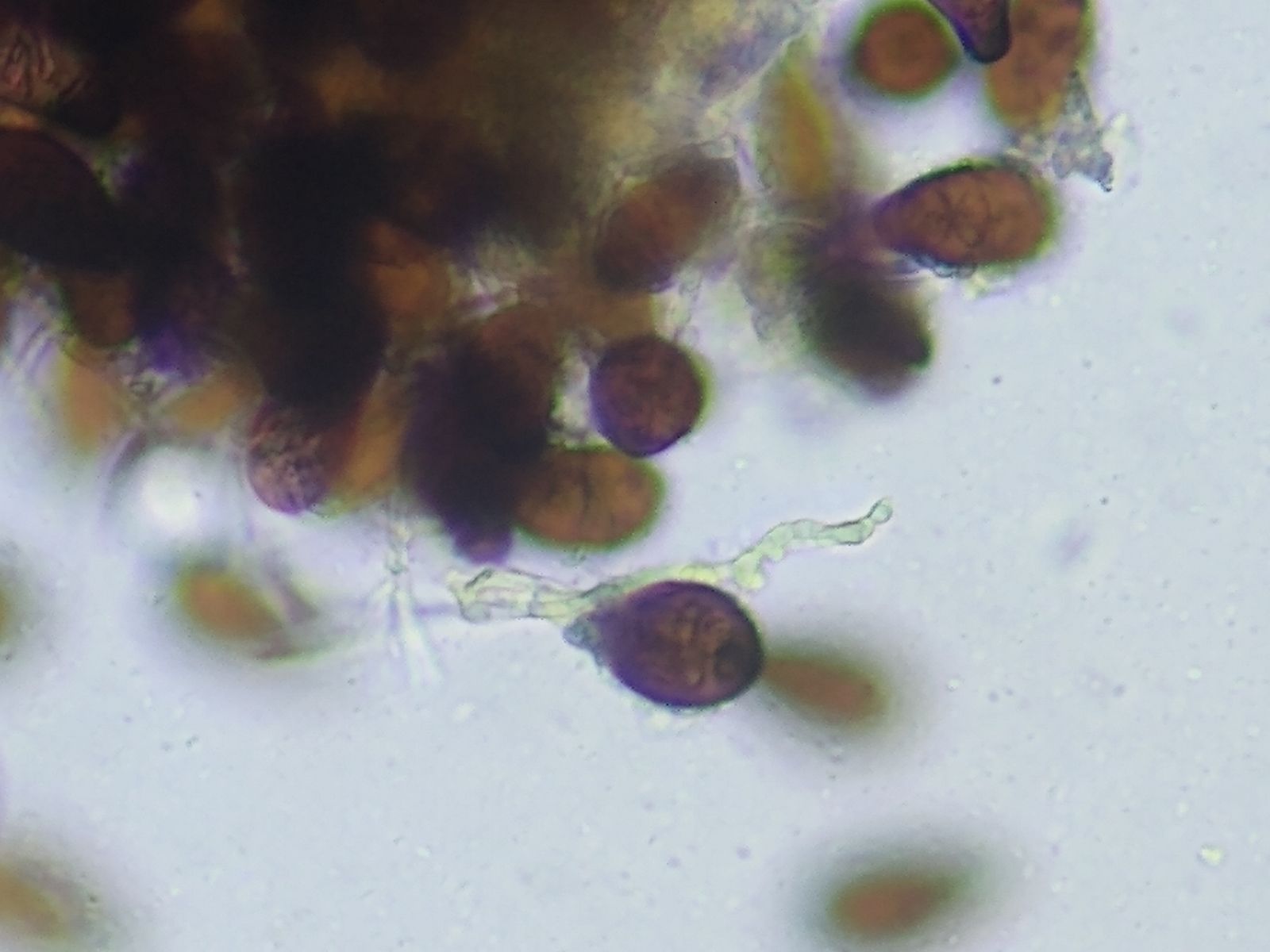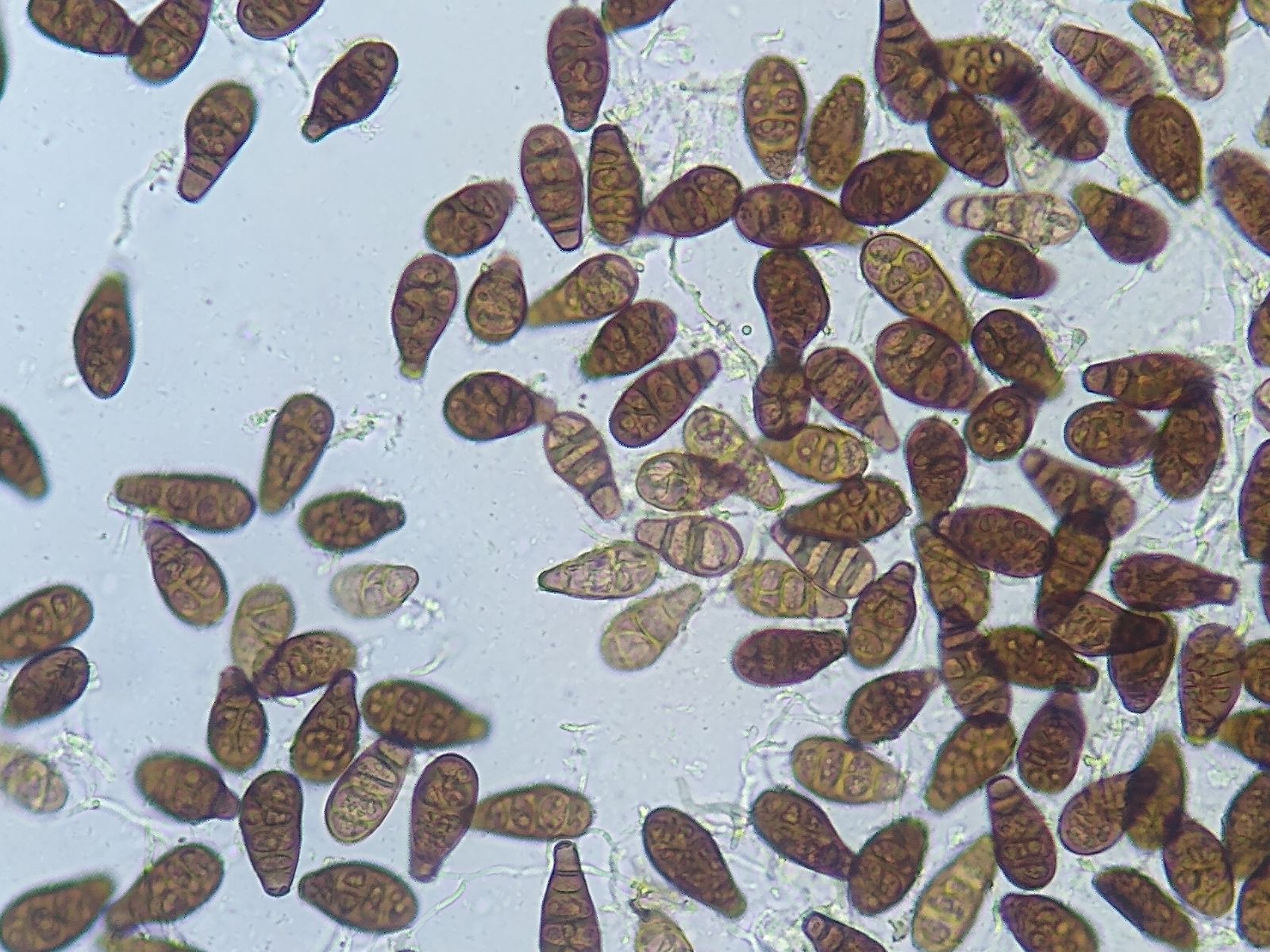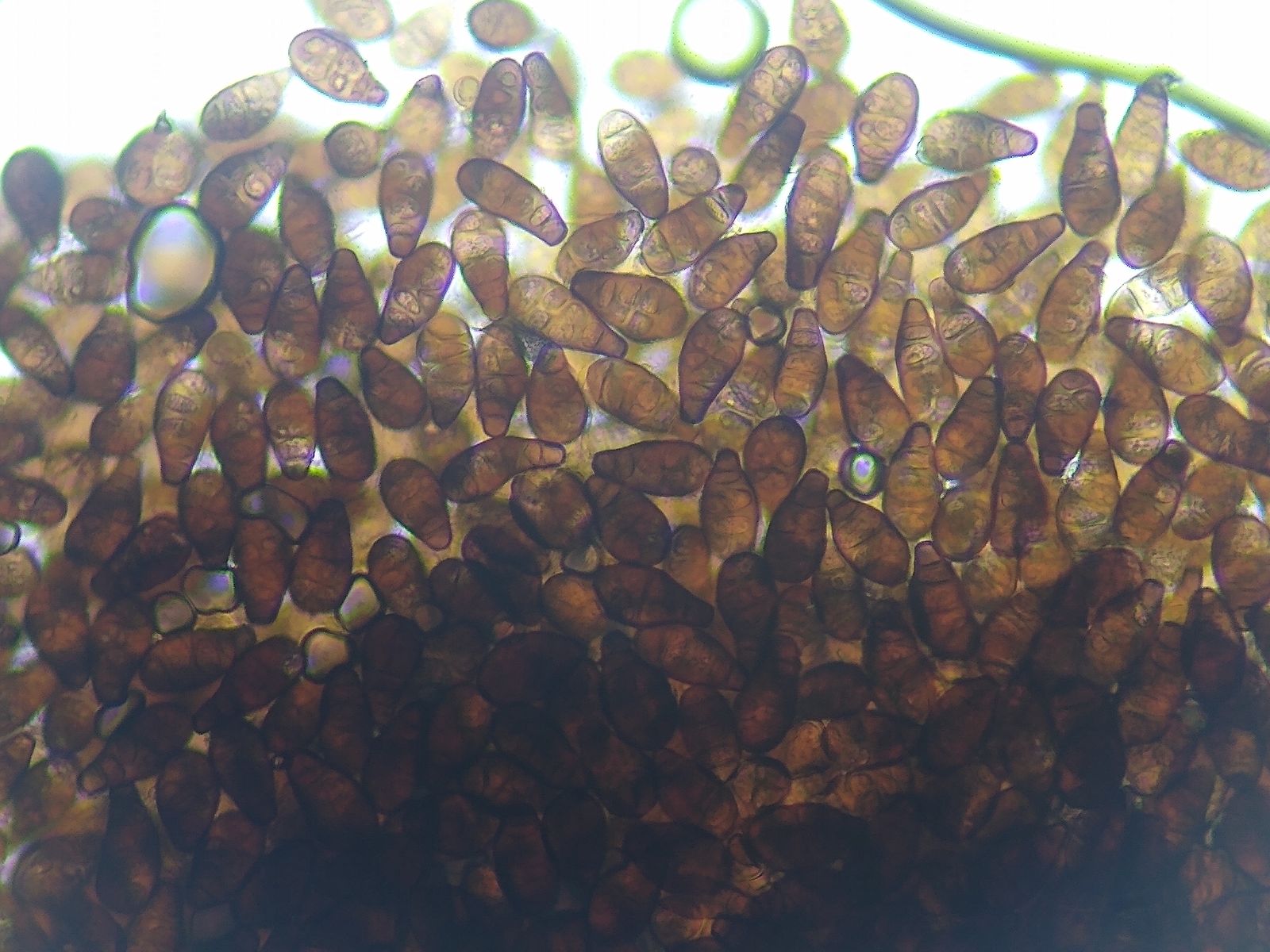 Die Sporen sind auch hier wieder 1-2-zellig, ebenfalls um 14x5µm groß, ohne dickes Septum - das wird zur Bestimmung aber nicht benötigt: