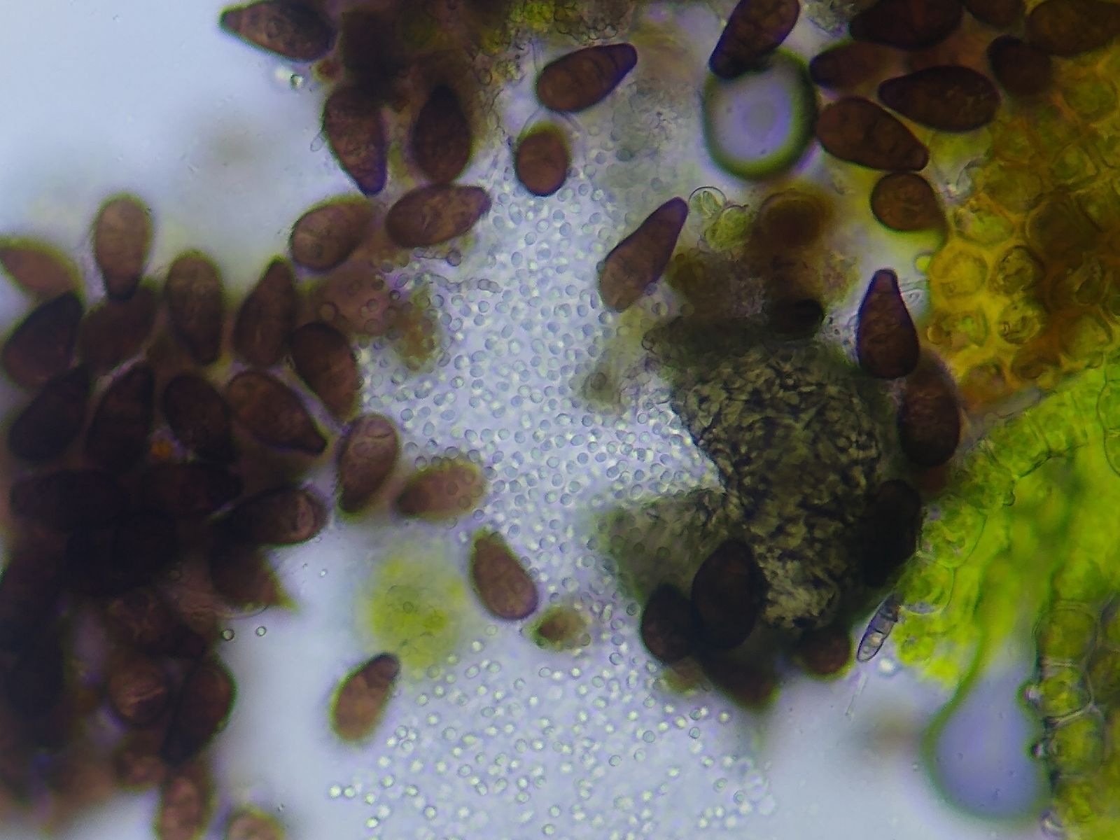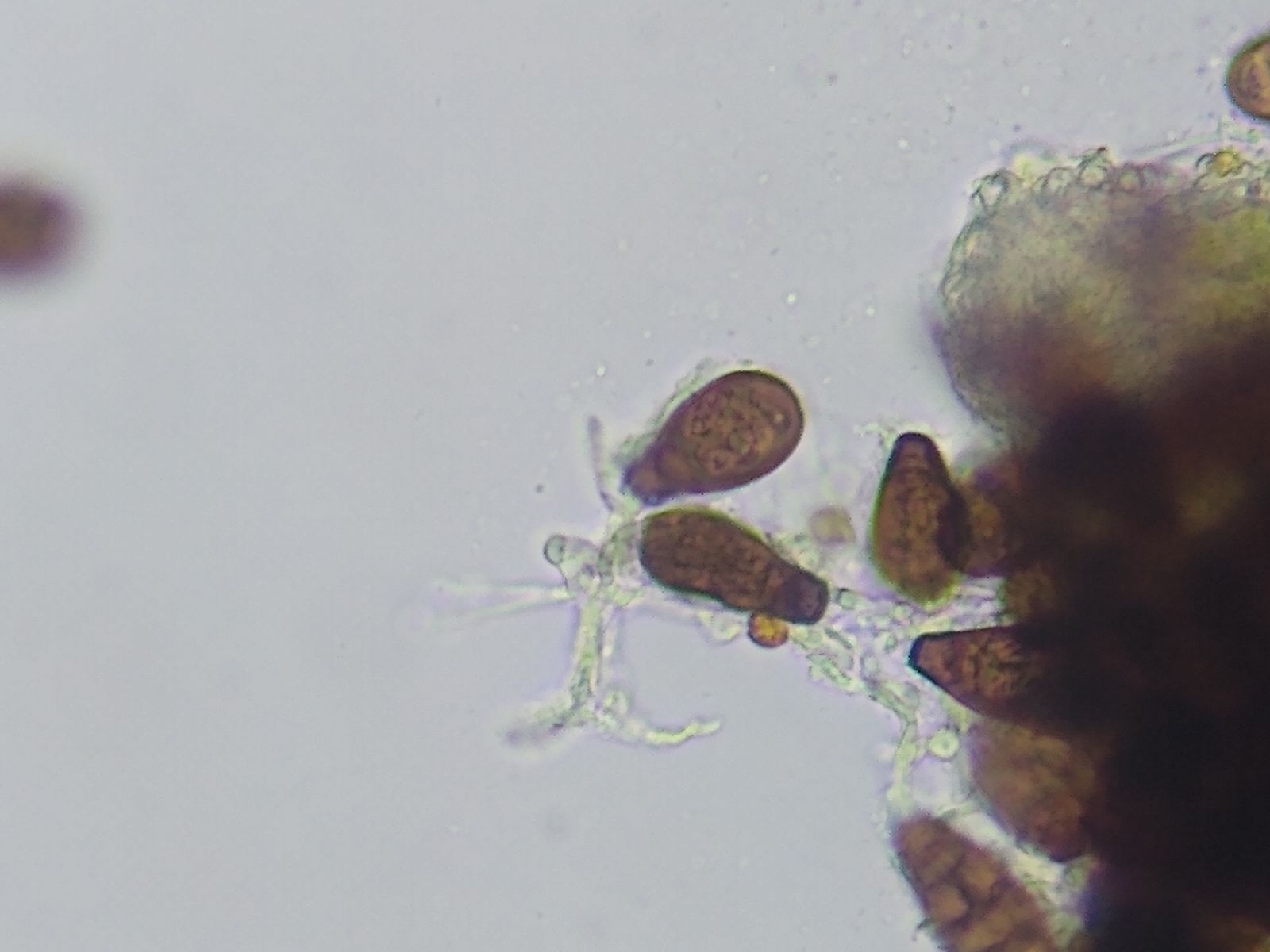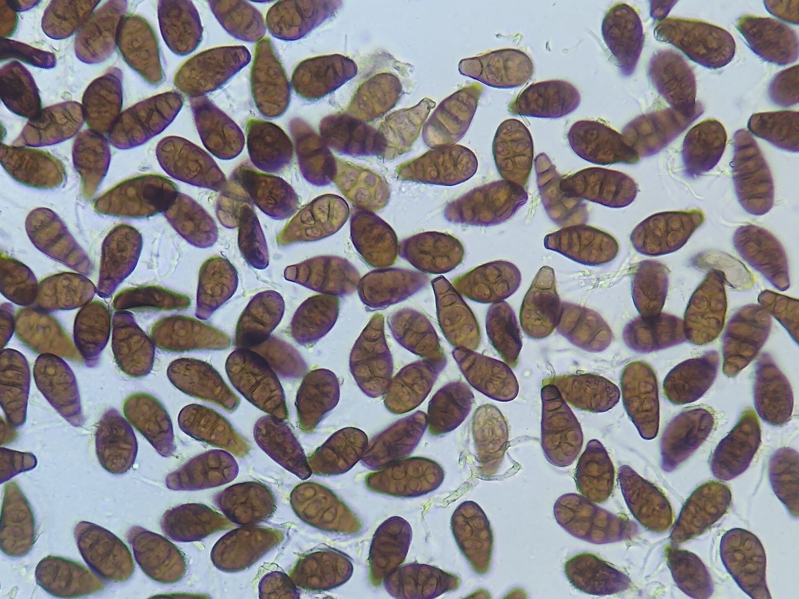 Die Sporen sind auch hier wieder 1-2-zellig, ebenfalls um 14x5µm groß, ohne dickes Septum - das wird zur Bestimmung aber nicht benötigt: