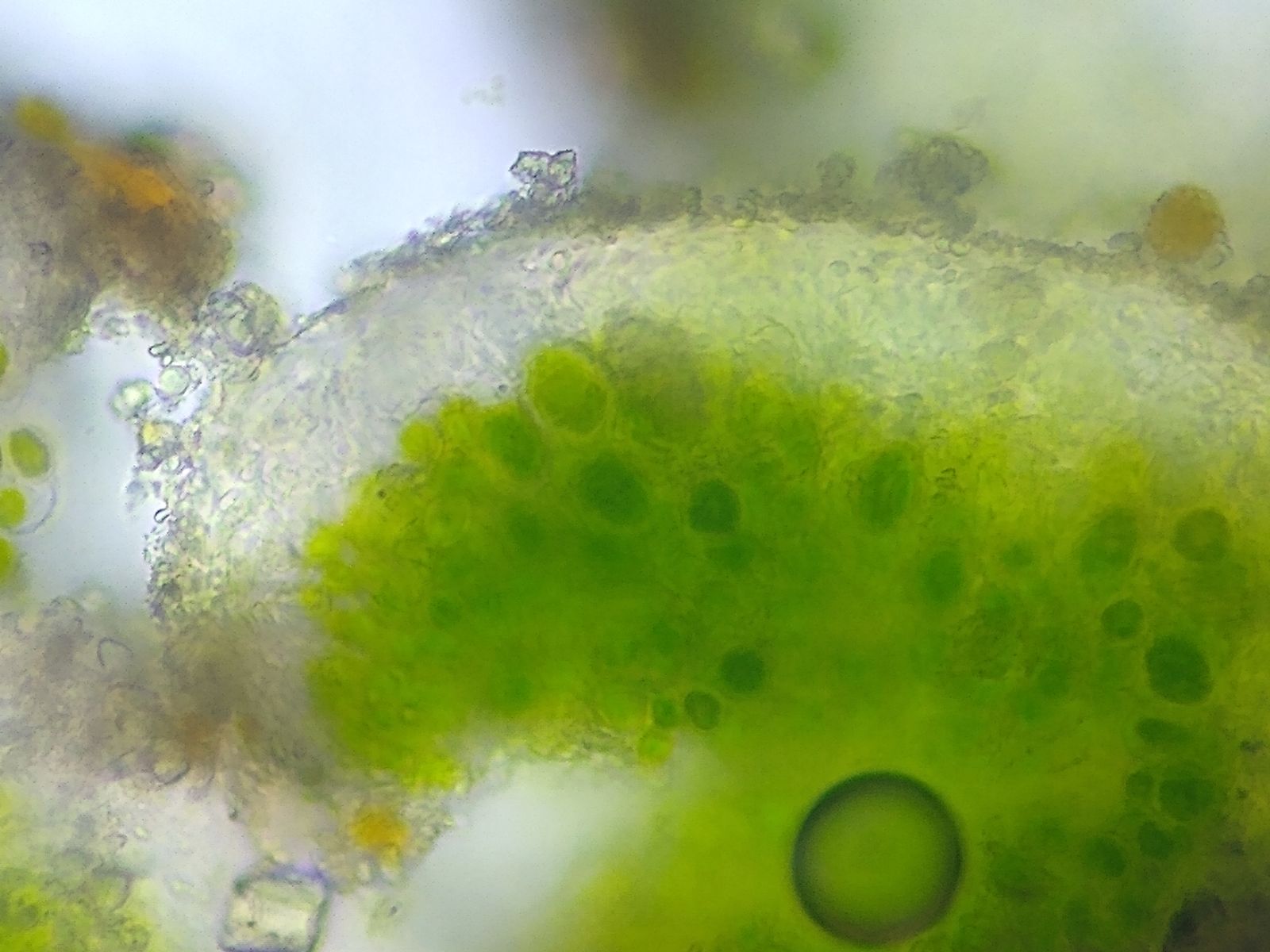 Bild 6 Bei stärkerer Vergrößerung erkennt man, dass die Pyknidien Hymenialalgen enthalten.