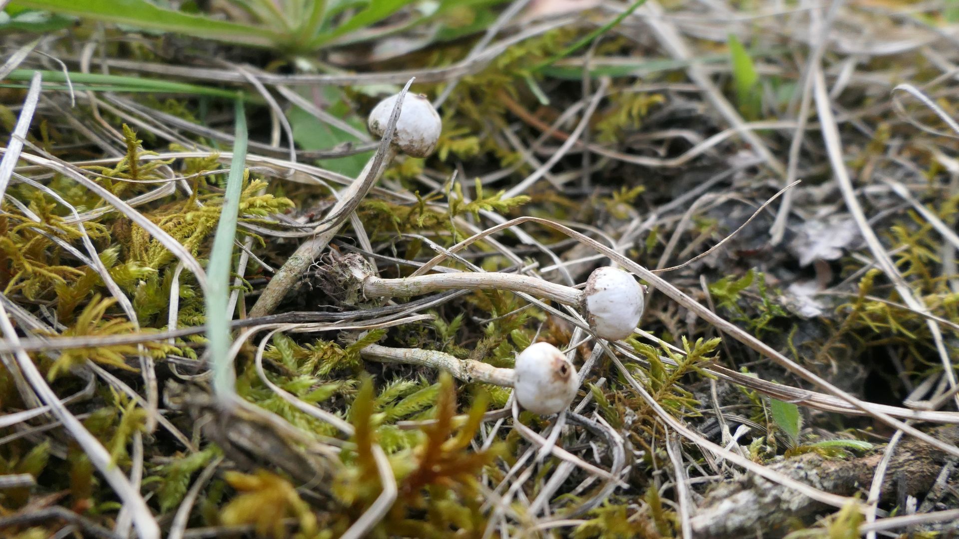 Bild 11 Stielboviste mit hellen Stielen und braunem Hof um das Peristom - Tulastoma brumale.