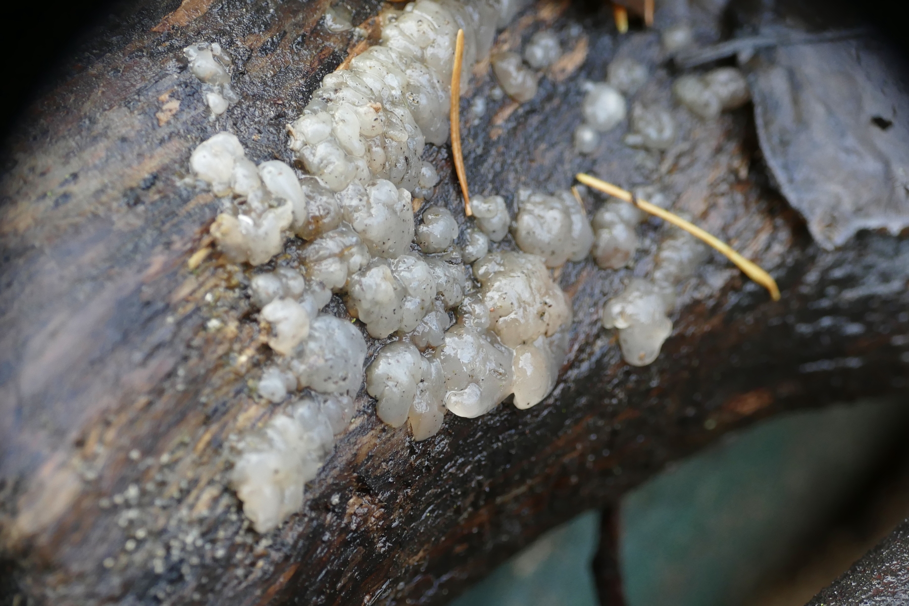 Ist das auch ein Pilz, war sehr glibberig und schwabbelig. Ebenfalls an Holz (dieses Mal könnte es aber wirklich Quittenholz sein