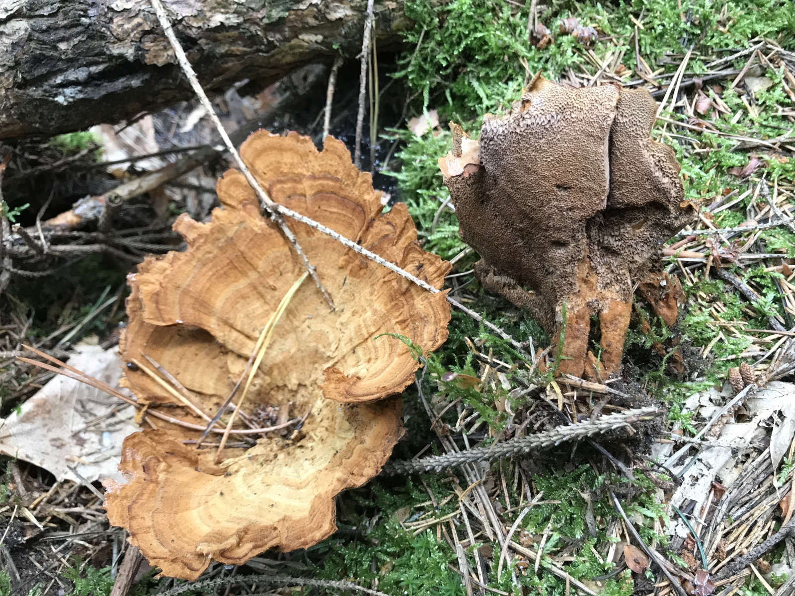 Also die 1 ist eine Fencheltramete. Würde ich sagen… und die 3 ist auf keinen Fall ein Zunder, sondern der vermutete flache Lackporling. Sieht man doch an dem strahlend weissen Rand.