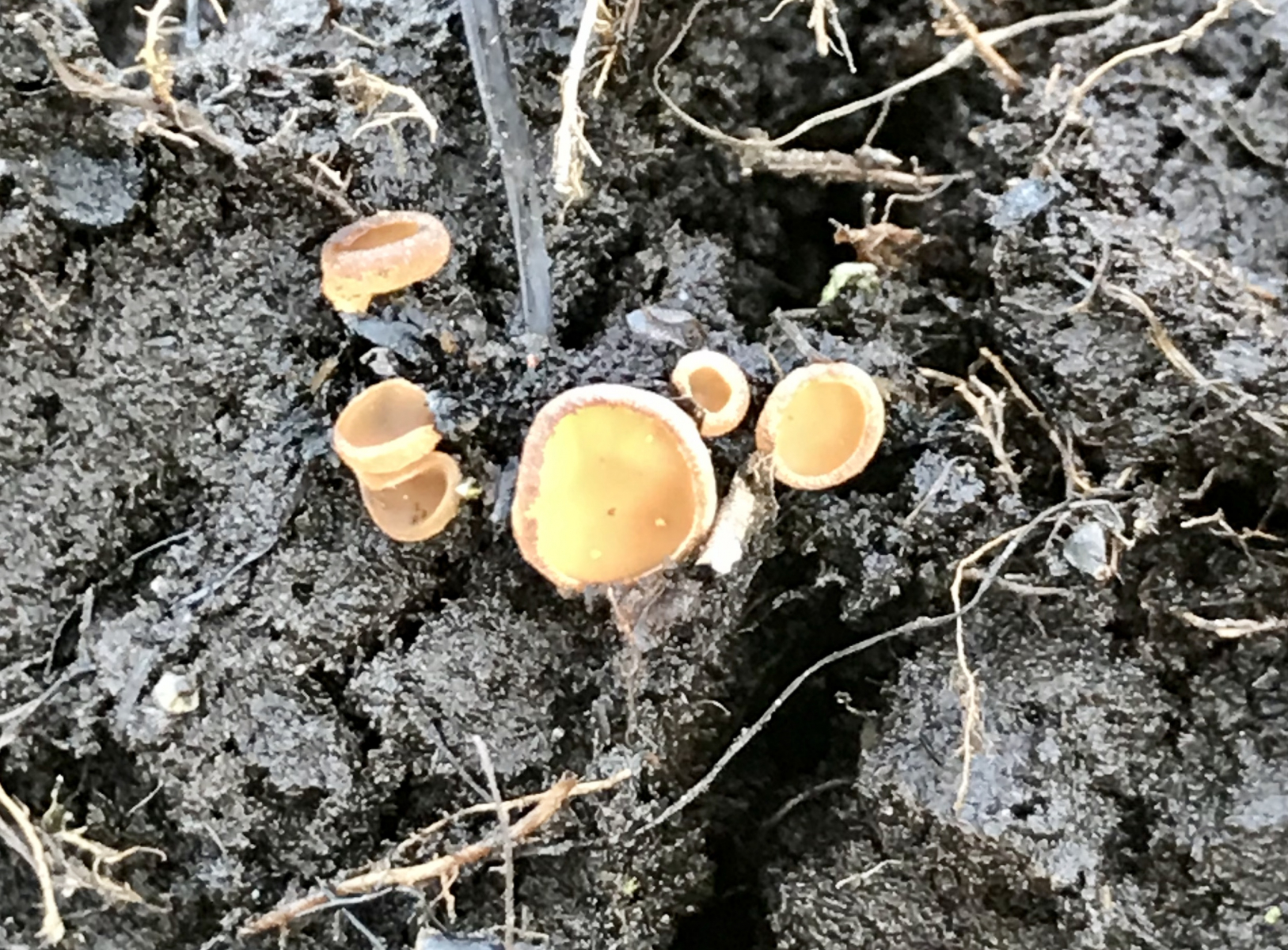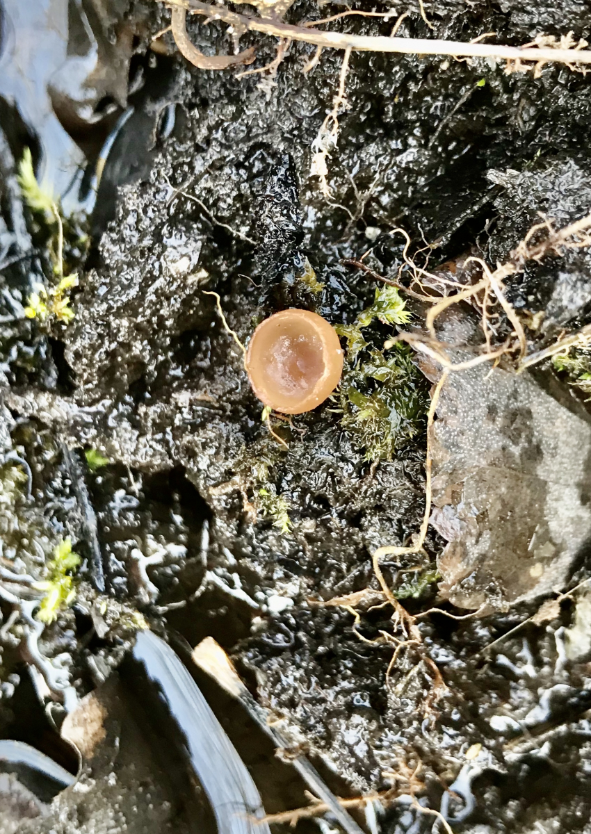 Und dann habe ich noch diese Becher am Wegrand gefunden. Durchmesser ca. 2-3cm, nahe einem Baumstumpf. Unterhalb war Fichtenwald, oberhalb wuchsen junge Laubbäume auf einer Lichtung. Kann mir jemand einen Tip geben ? Vielen Dank!