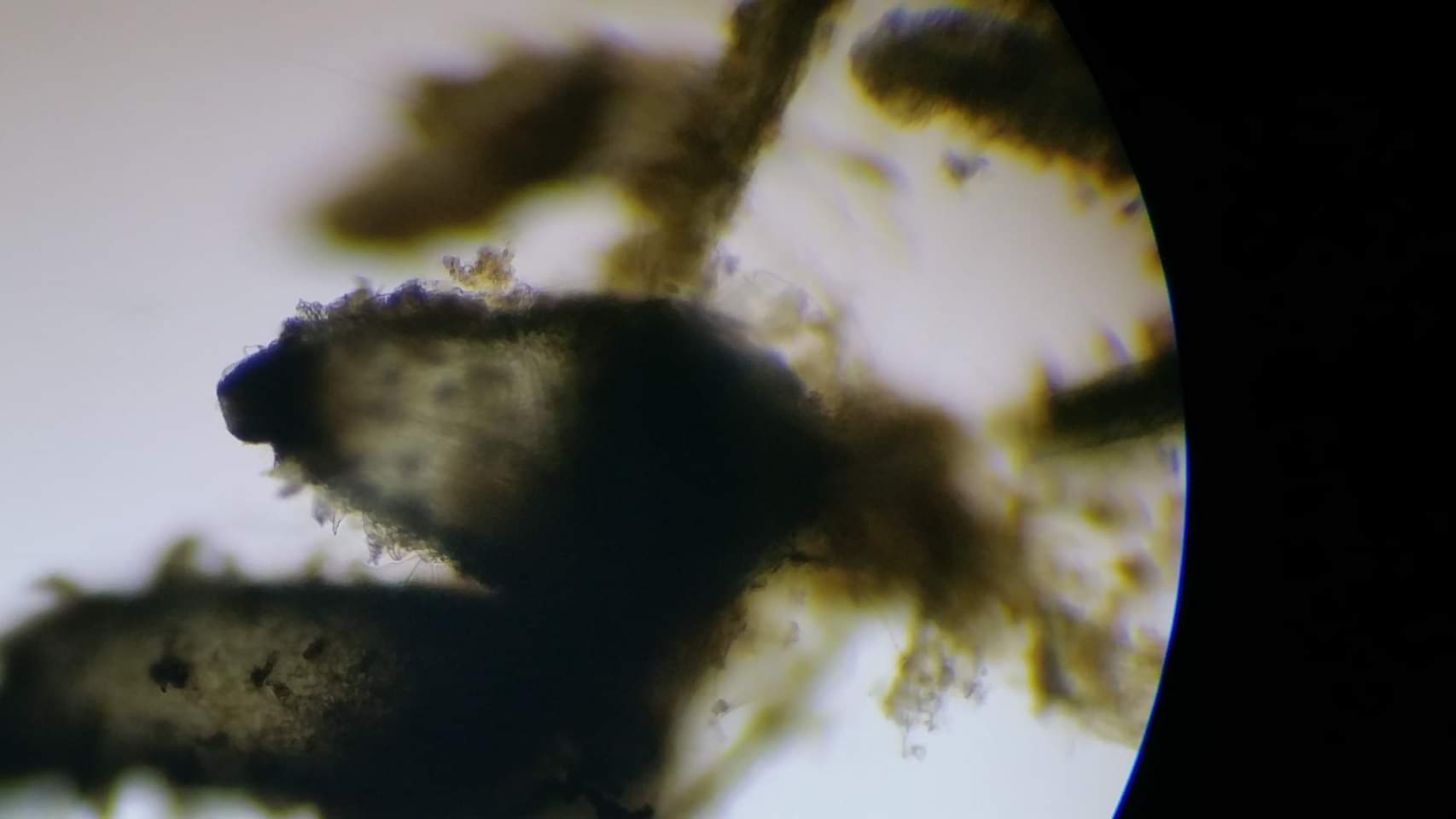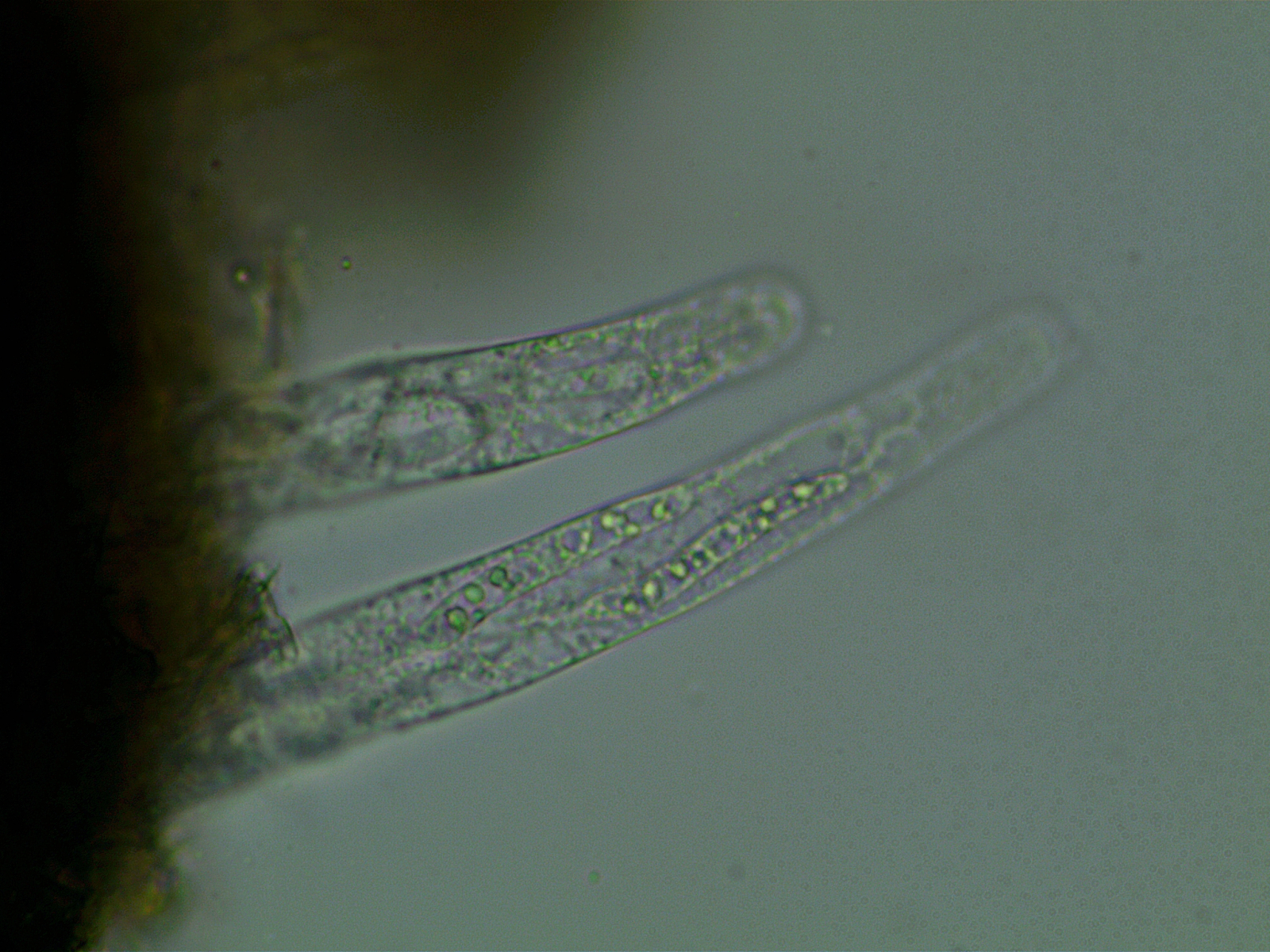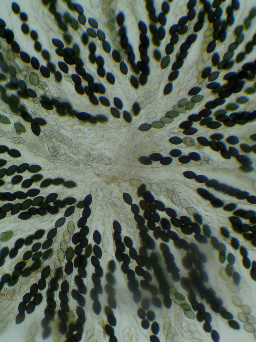 Zu achten wäre dann auf die Maße der Sporen( die bekommen reif noch einen dunklen Teil), deren Anhängsel (sieht man hier schon im Ersten Mikrobild (2 jpg)), und die Behaarung der Fruchtkörper.