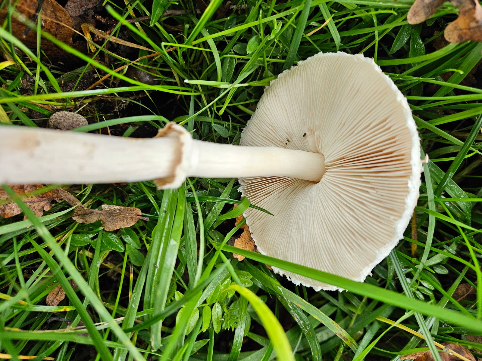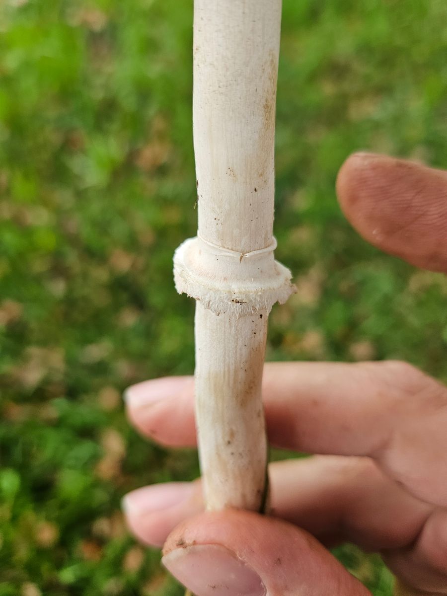 Auffallend der grosse Anteil an weissem Myzel am Stiel (konnte die Fruchtkörper ziemlich einfach aus der Erde ziehen). Geruch eher fruchtig (dachte zuerst an Mehlräslinge, aber nach dem Geruchstest sofort verworfen). Hut wie auf den Fotos stark bleiweiss.