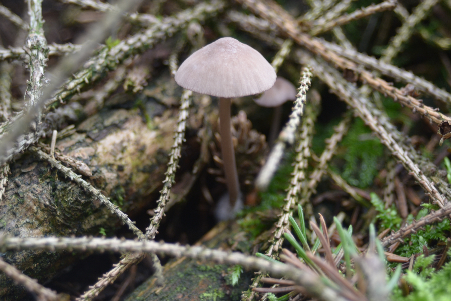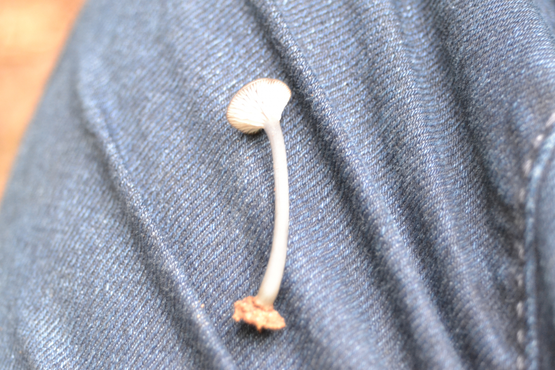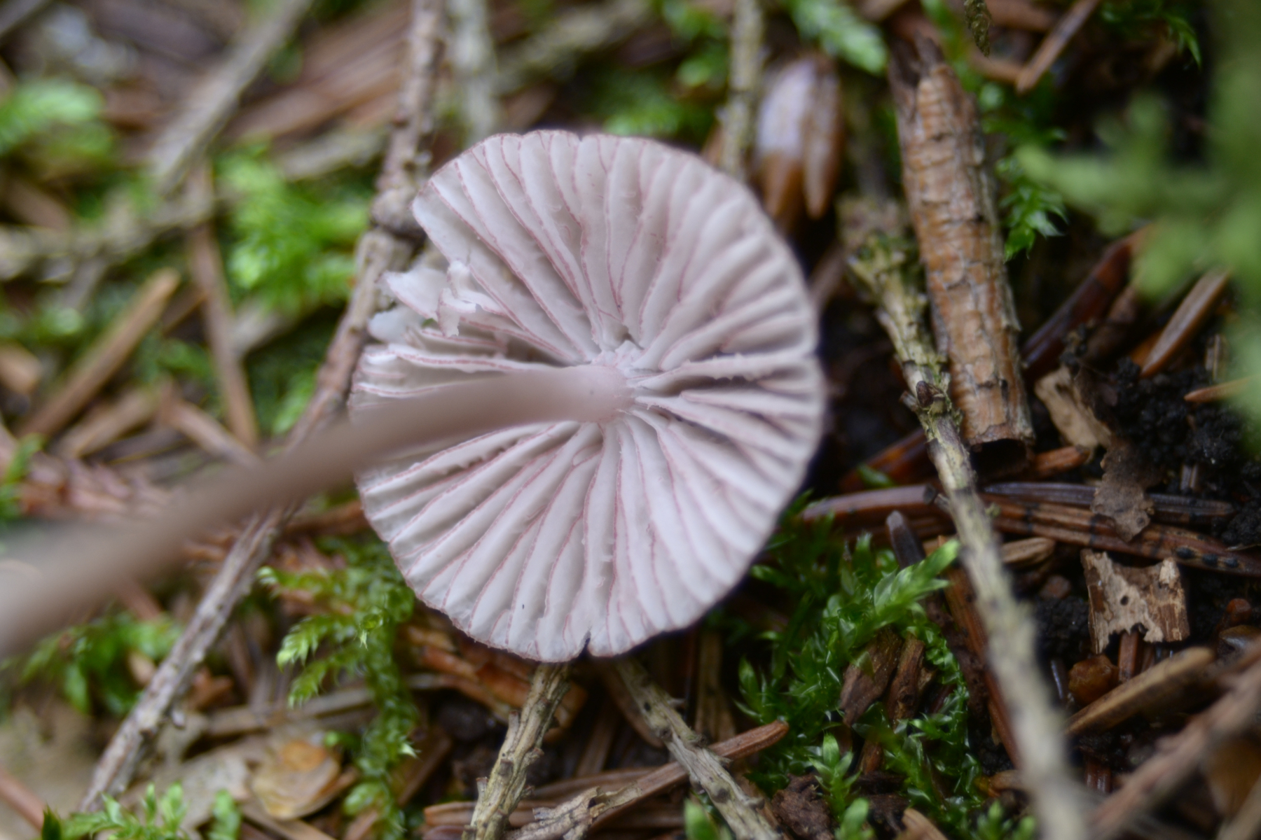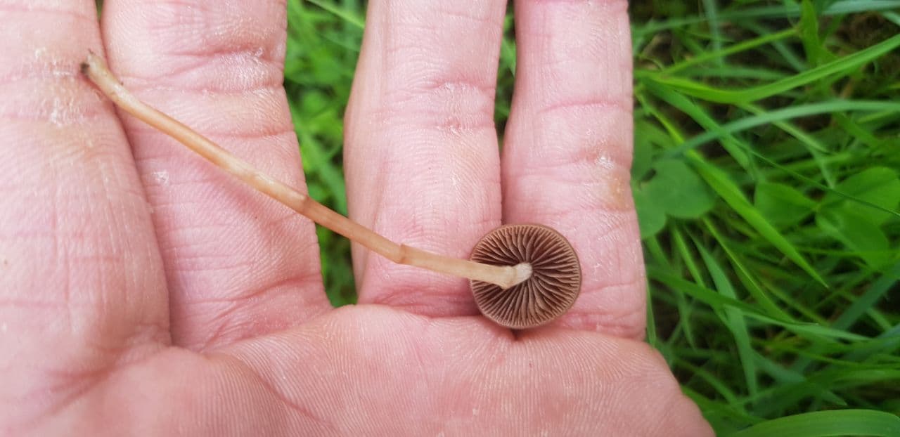 Das könnte Mycene sanguinolenta sein oder? Der Stiehl hat mich sehr an ein Halsbandschwindling erinnert er war aber nicht so starr. Die Lamellen sind mittlerweile auch weiß-rötlich gefärbt.