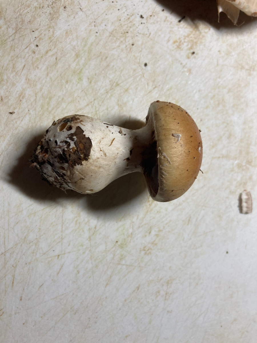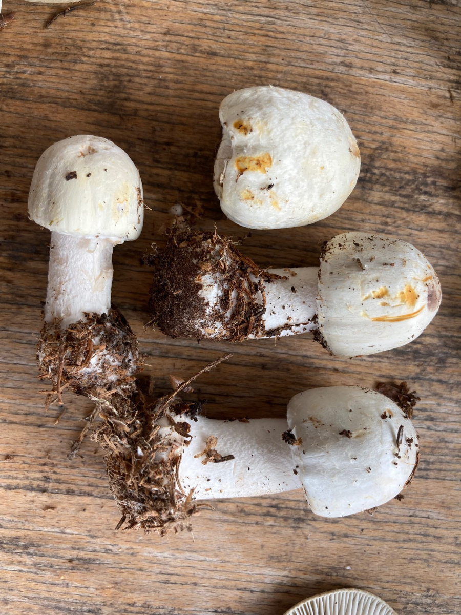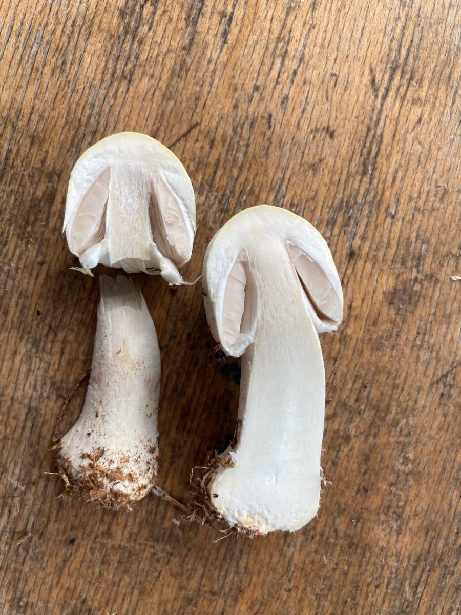 Gegen A. Raserei spricht meiner Meinung nach die Form der Stielbasis (fast wurzelnd statt abgesetzt knollig) und das sich das Stielfleisch nicht verfärbt