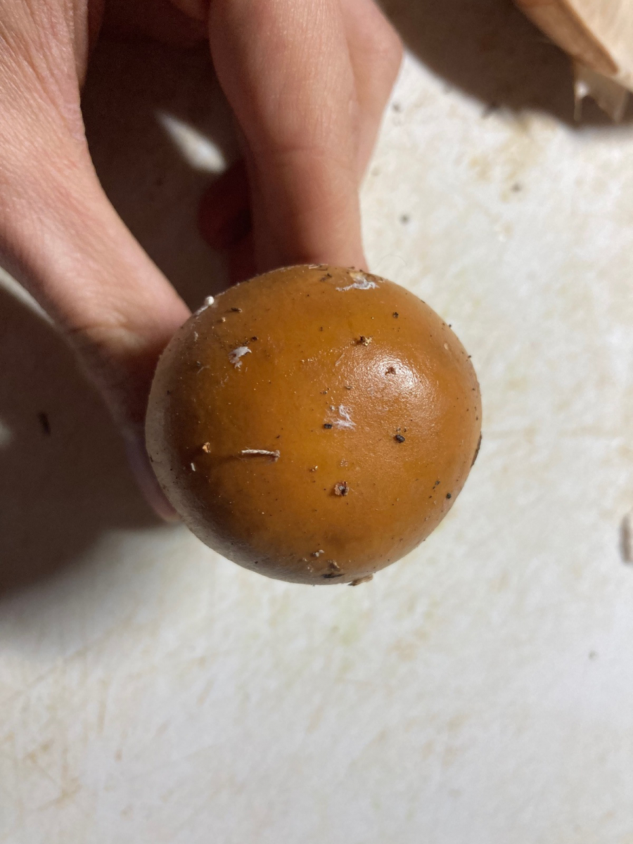 Restliche Merkmale siehe Bilder. Was mich wundert ist die monotone Färbung des Stiels, der Rotstich im Hut und vor allem, dass das velum partiale keine grau-Violetten Sporenreste zeigt wie sonst üblich. Ziegelroter Schwefelkopf Käme in Frage, der müsste aber bitter sein. Wie seht ihr das?