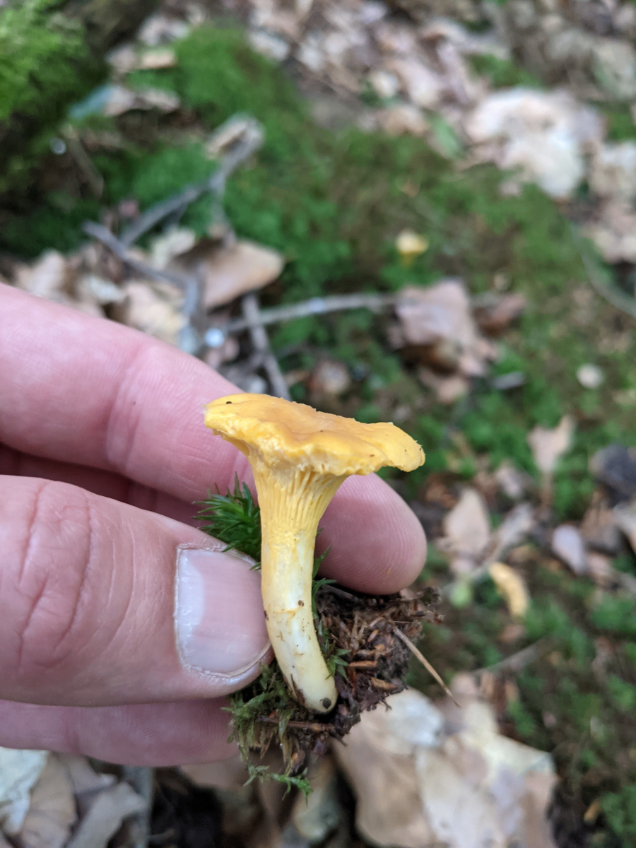 Die Pfifferlinge laufen uns einfach so über den Weg: Neben den unfassbaren Teppichen in diesem einen "Zauberwald", haben wir uns schon drei kleinere Stellen erarbeitet - macht Spaß ![]()