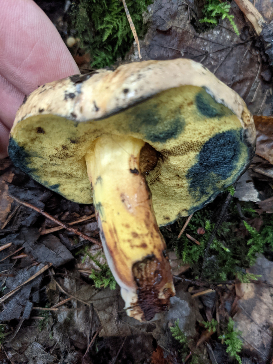 Auf den Rotfußröhrling oder starkbläuender Röhrling wie du ihn genannt hast bin ich auch gekommen, aber hier ist die Unsicherheit sehr groß, da ich vor einer Woche einen ziemlich identischen gefunden hatte, der kaum gebläut hat
