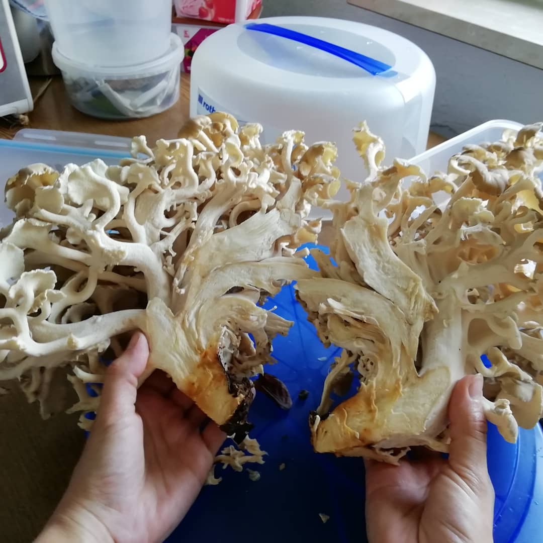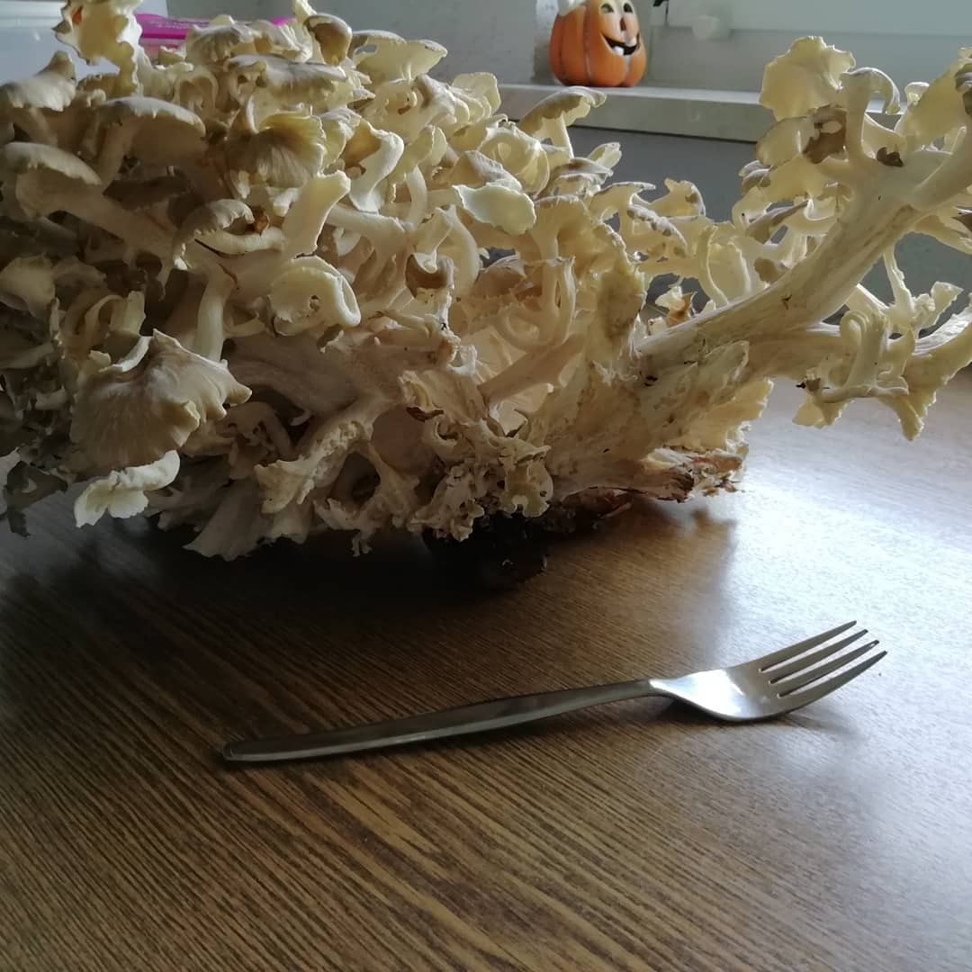 Hallo zusammen, heute habe ich in einem Buchenwald disen Pilz gefunden, er richte nüssig, ist das Eichhase (polyporus umbellatus)?