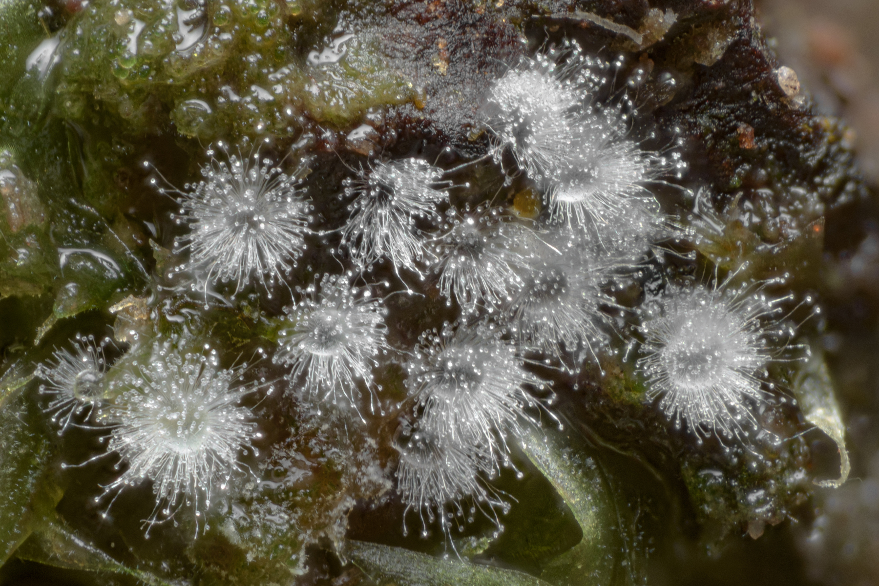 Versuche, einzelne Exemplare per Pinzette zu entnehmen scheitern – sie sind sehr empfindlich und verhalten sich da ähnlich wie Formen von C. fruticulosa, die bei Berührung als elastischer Schleim reagieren und sich nicht fassen lassen.