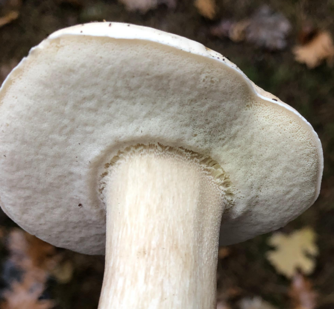 Der ist auch noch etwas jünger, die Röhren sind noch weißlich und beginnen sich erst zu verfärben, das geht dann ins gelbliche über bis hin zu olivgelb/olivgelbgrünlich, die sind dann meist nix mehr. Die ganz jungen festen haben weißliche Röhren. Beim aronenröhrling hättest du auch jung einen sehr hellen gelblichen Farbton und die Röhren würde auf Druch blauen, wenn auch manchmal nur sehr leicht bei ganz jungen. Der stiel bei Maronen hätte auch gar kein Netz, sondern eine mehr oder weniger dunkle bräunlich, bisweilen gelblich bräunliche Faserung in Längsrichtung. So z.b.