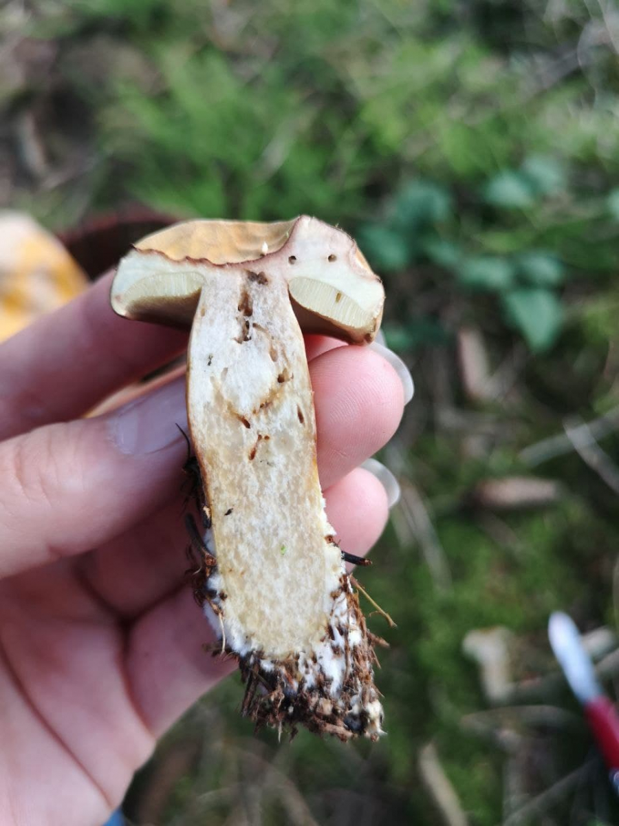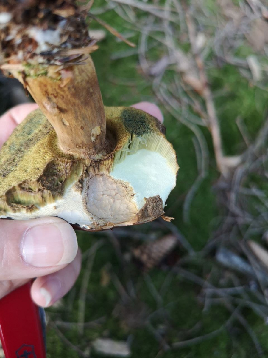 Verfärbung: Im Querschnitt sah ich keine klaren Verfärbungen. Aber auch hier kann ich sagen, dass der Pilz wirklich sehr trocken war und bin nicht sicher, ob es da einen Zusammenhang gibtoder ich vielleicht nicht lange genug gewartet habe?