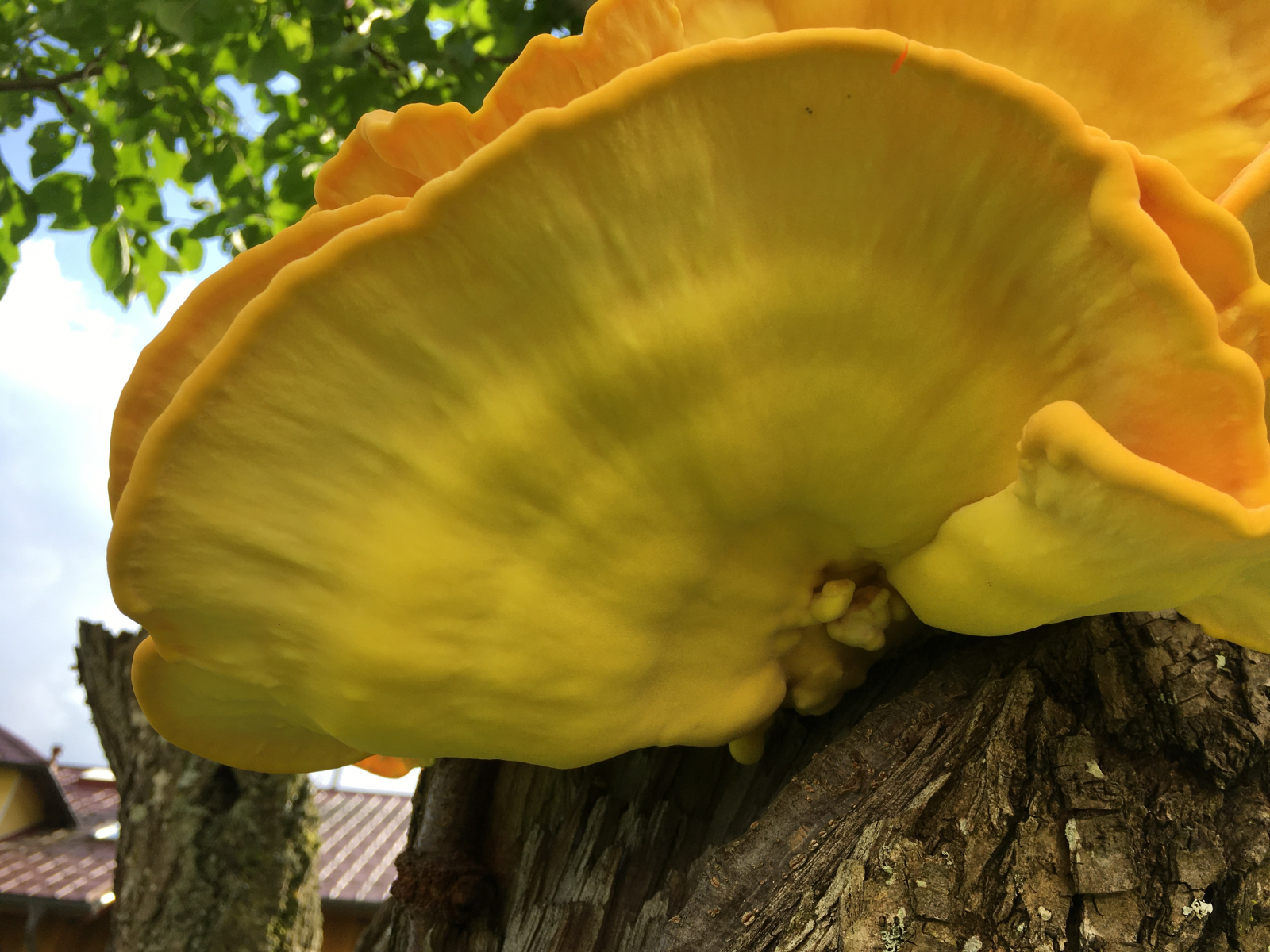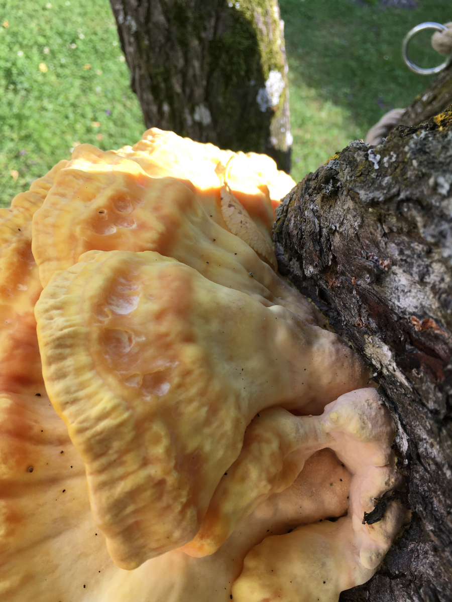 Liebe Experten! Am Zwetschkenbaum hat sich ein gelber Pilz angesiedelt und gedeiht nun prächtig.