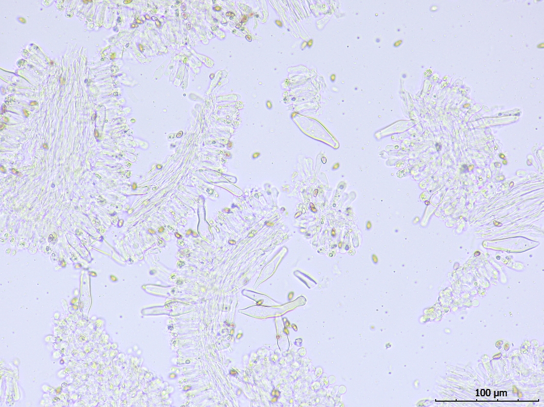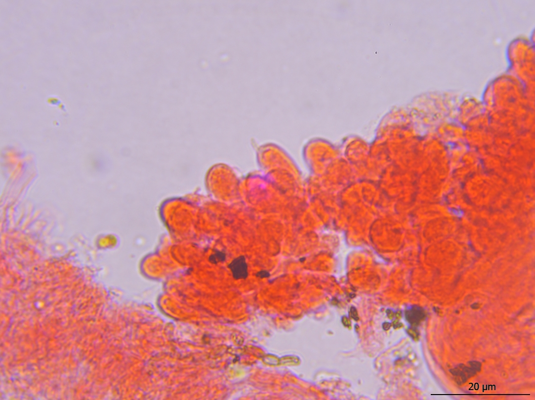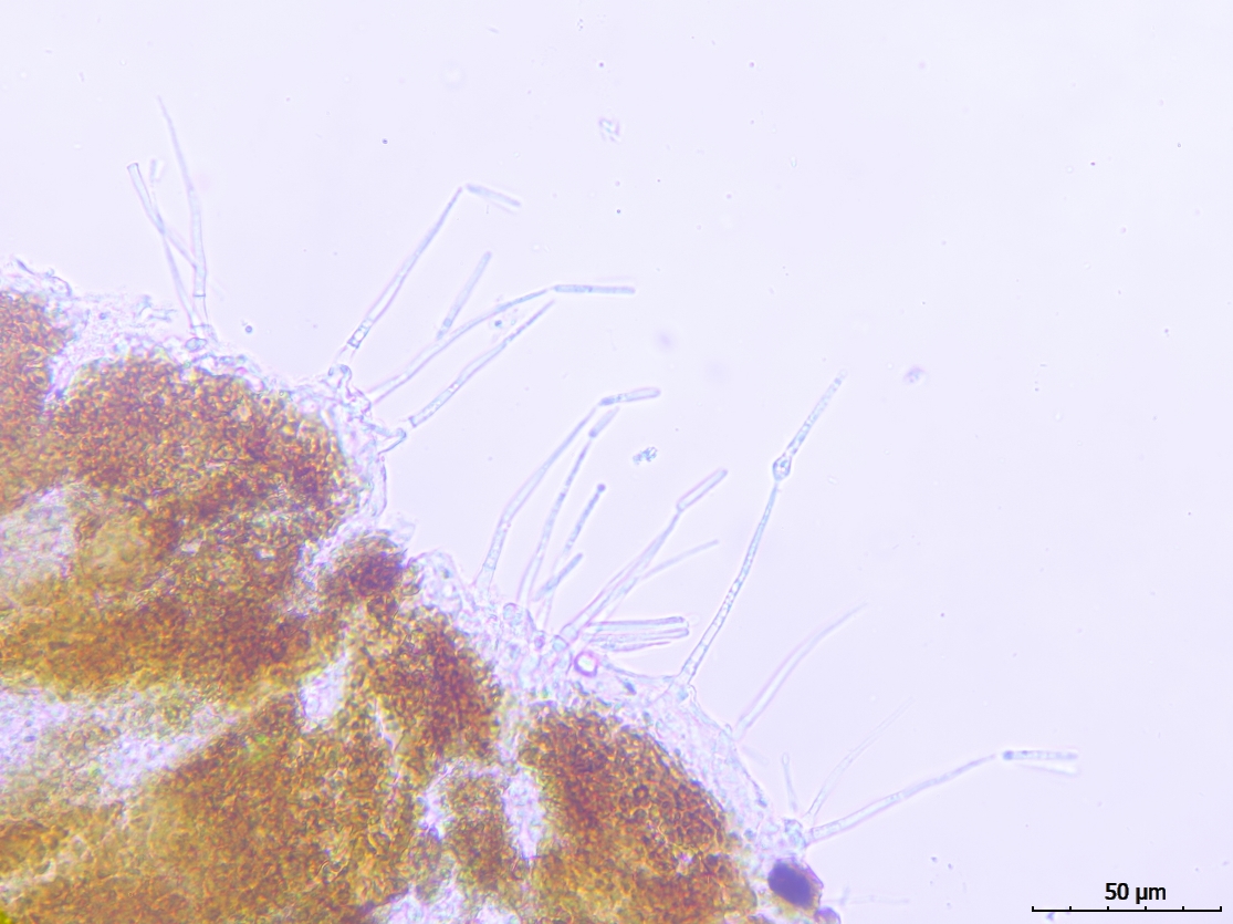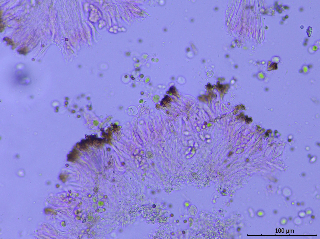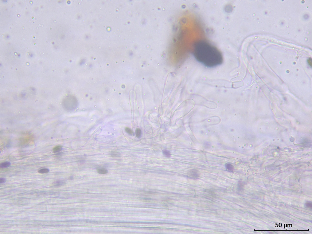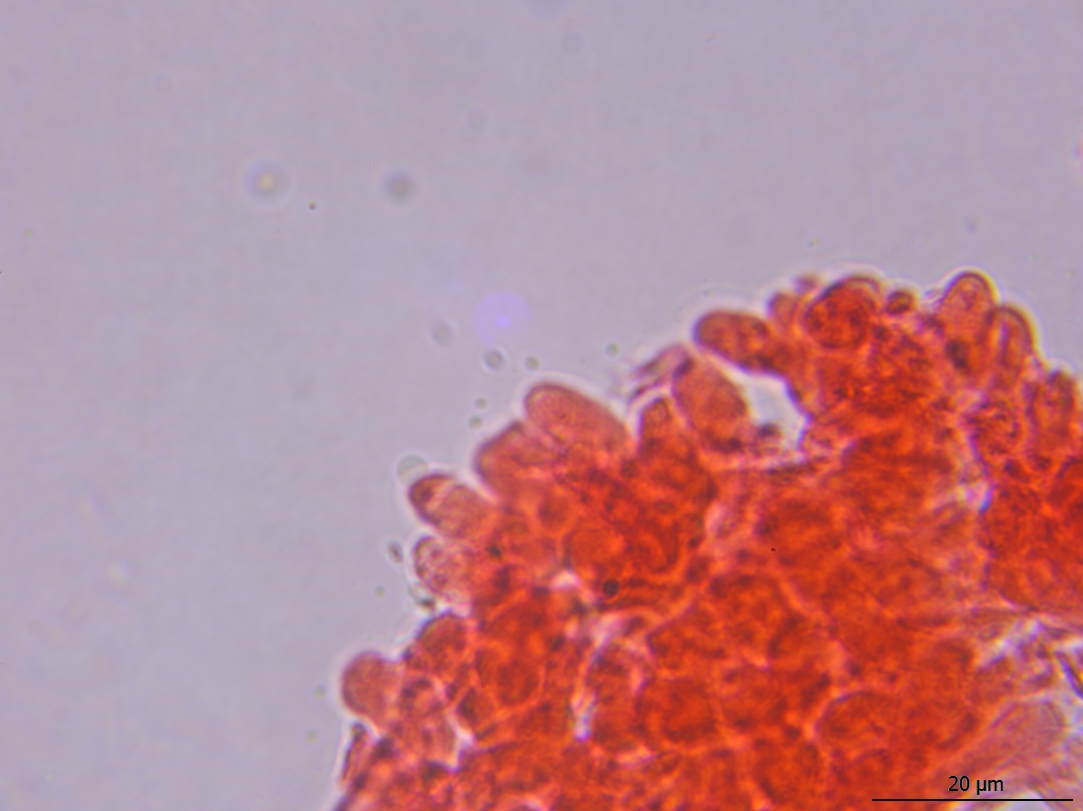 hast du die Huthaut denn mit Sulfovanillin angefärbt? Manche Täublinge haben Dermatozystiden, die echt schwer als solche zu erkennen sind, weil sie nicht großartig verdickt oder stark lichtbrechend sind. Ich hab die bei meinen ersten Täublingsbestimmungen bei manchen Arten einfach übersehen, wenn ich nur mit Kongo gefärbt habe.