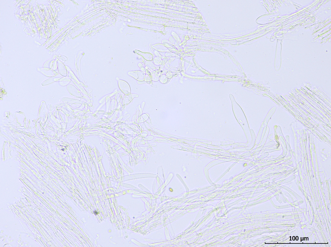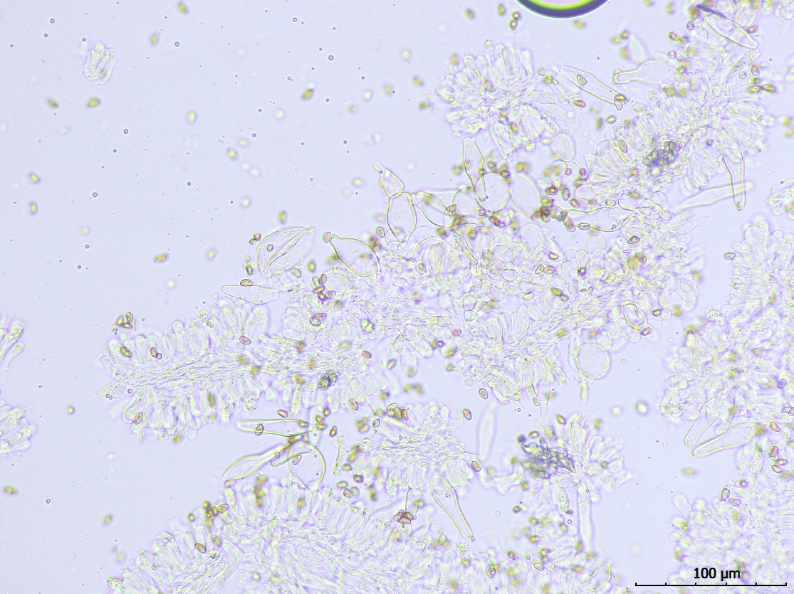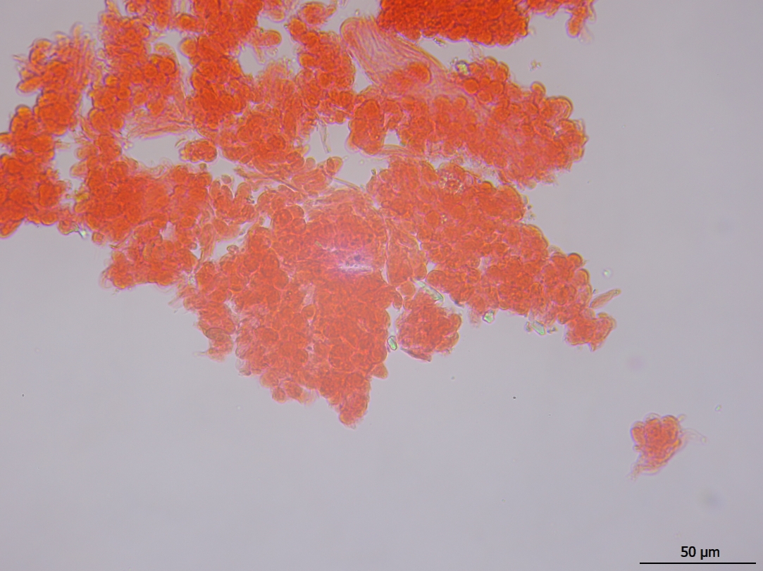 nein, so sah es nicht aus. Alles inklusive der Sporen hatte diese hellbraune Färbung, was aber wohl keine Dextrinoität darstellt, sondern einfach die Färbung des Melzers Reagenz. Keine Struktur hat stärker darauf reagiert.