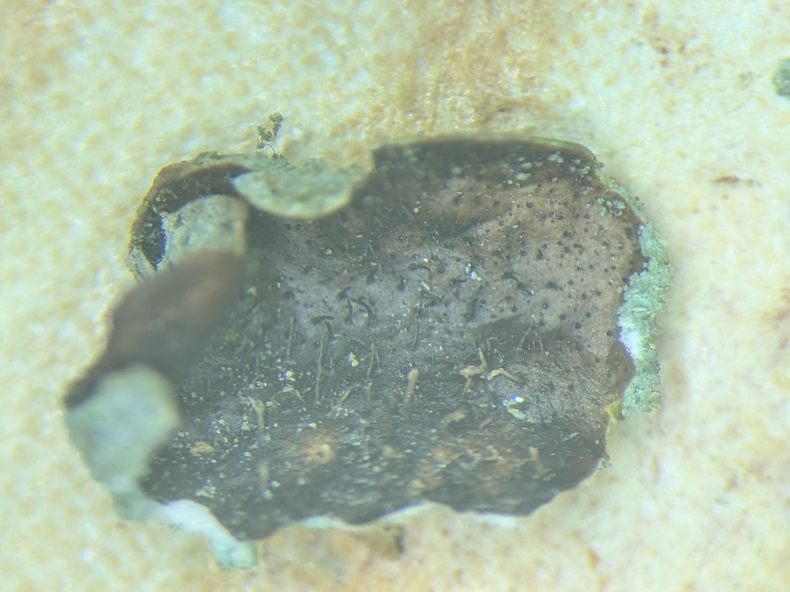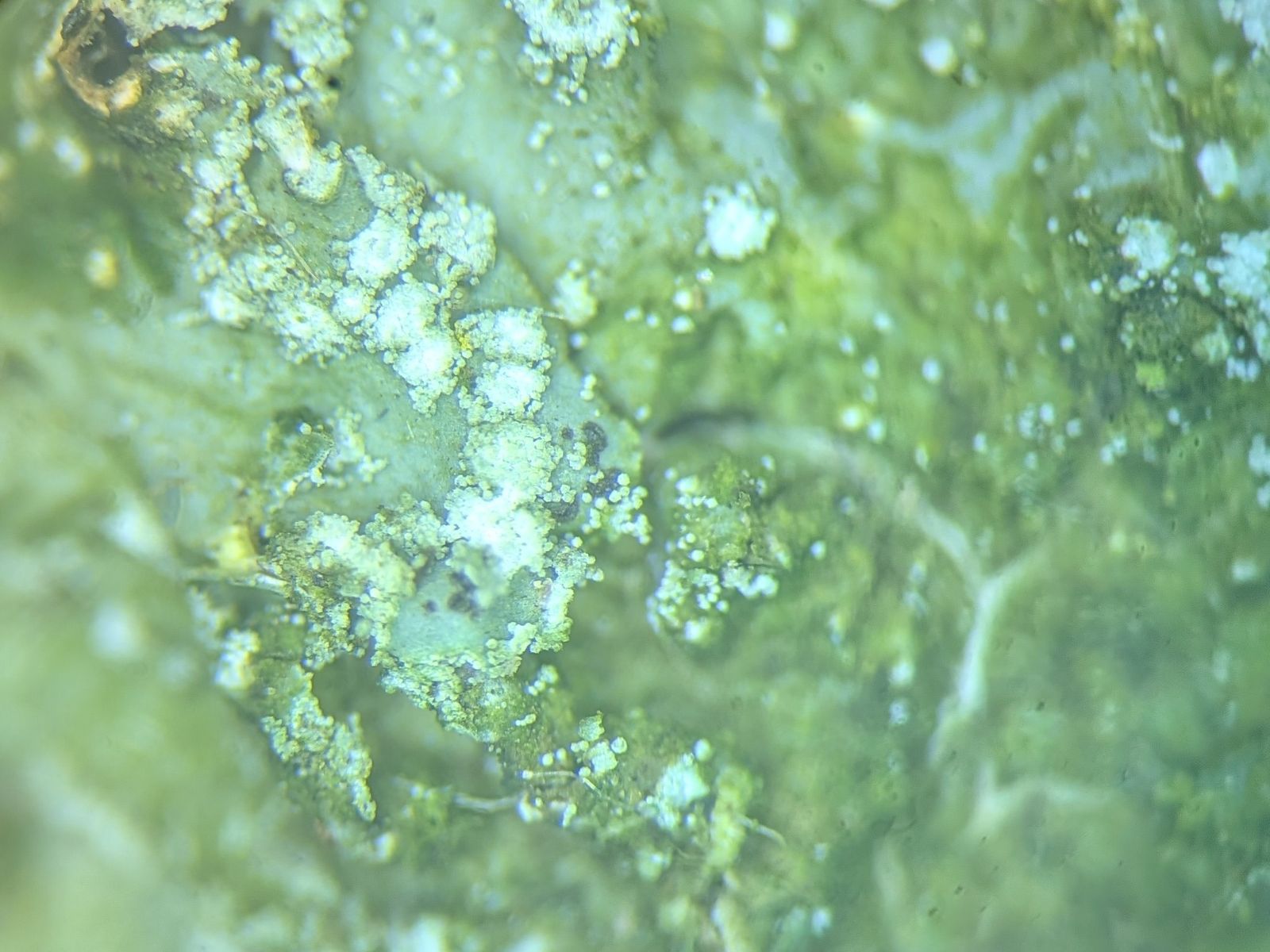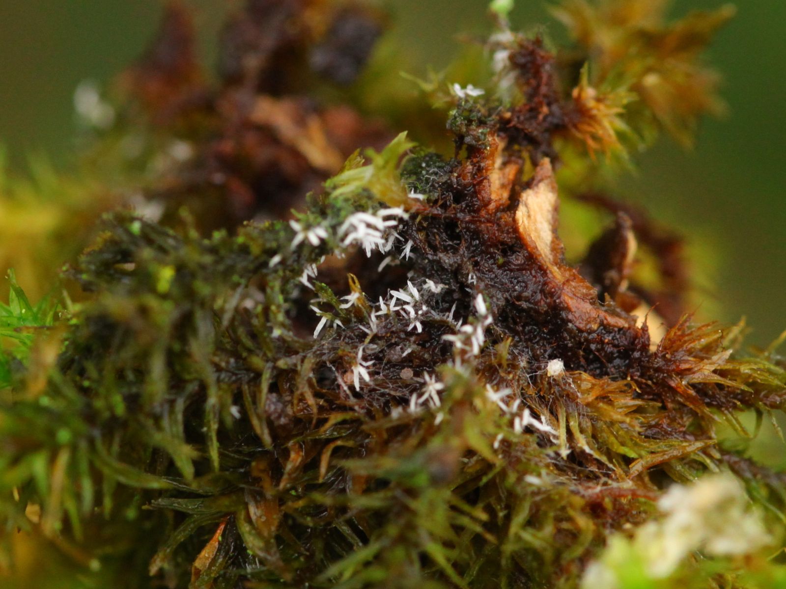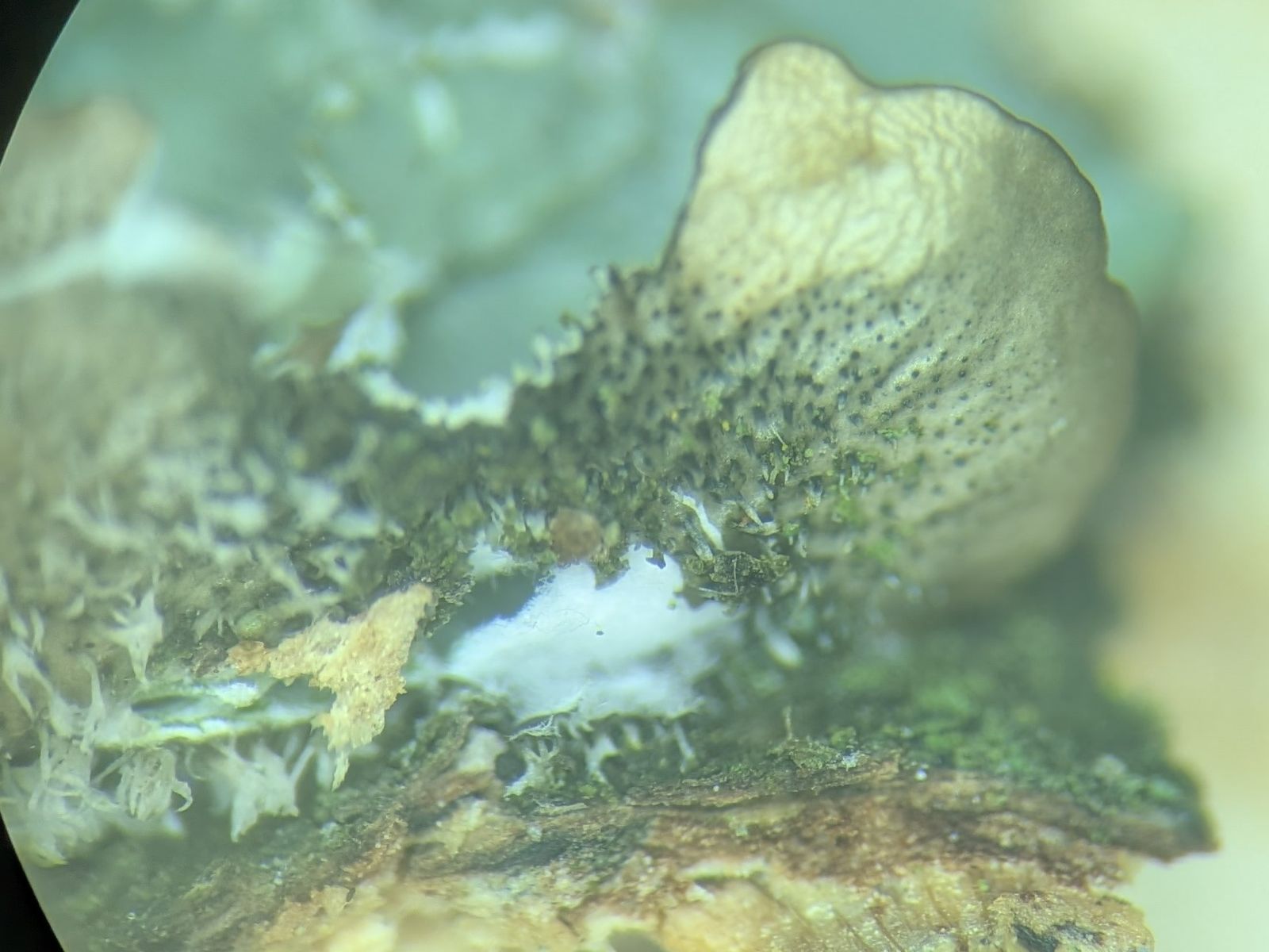 ich habe hier kleine weiße Fäden auf Pulvigera lyellii gefunden und vermute, dass das etwas pilzliches ist. Jedoch stehe ich auf dem Schlauch und kann leider auch keine Sporen ausmachen. Vielleicht kann ja trotzdem irgendjemand dazu was sagen?