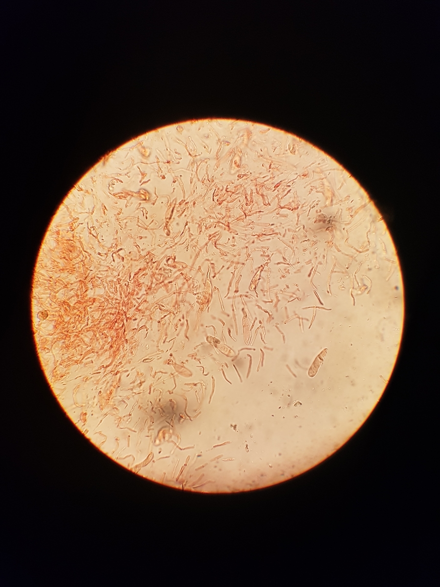 Ich hoffe, ihr könnt mir helfen und der Pilz ist bestimmbar. Weitere Mikromerkmale, die nötig sein sollten, kann ich morgen nachliefern. (Exsikkat)
