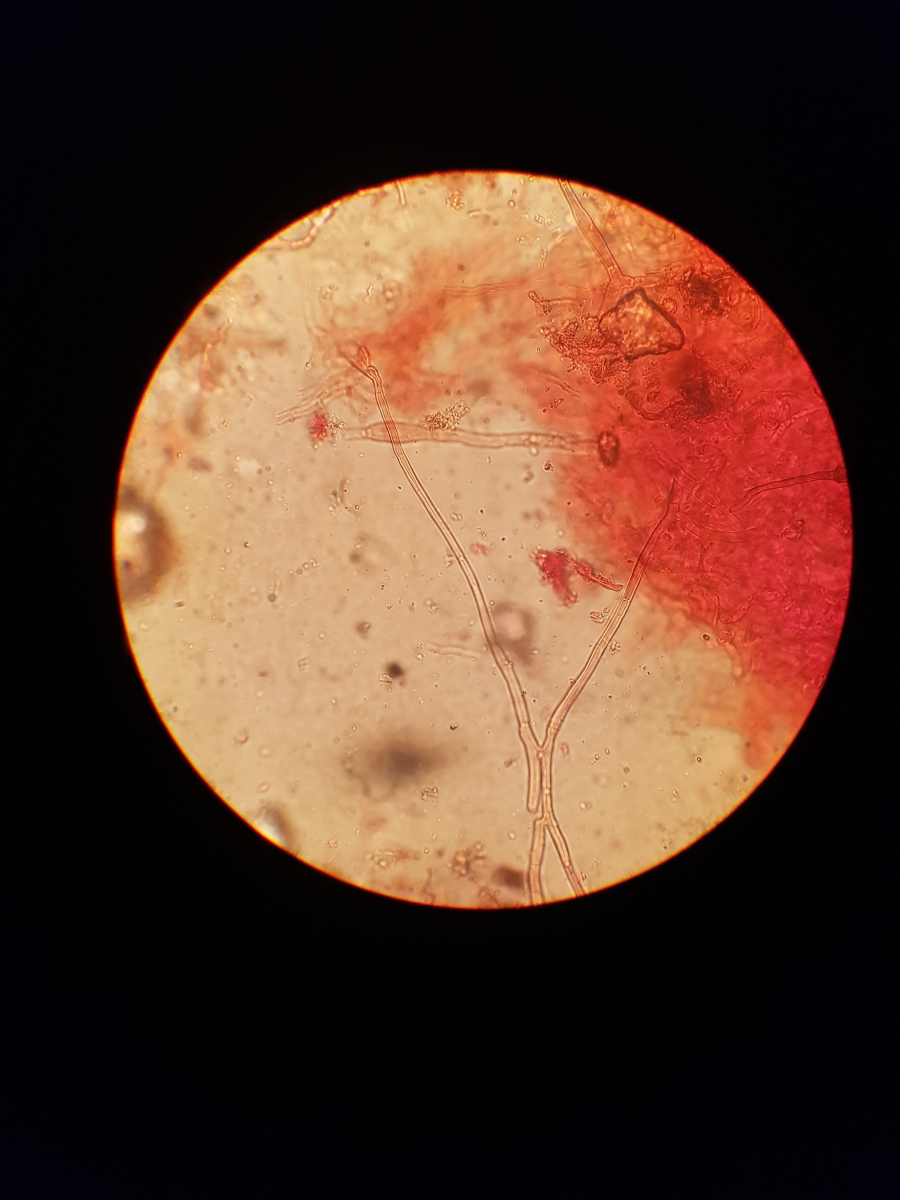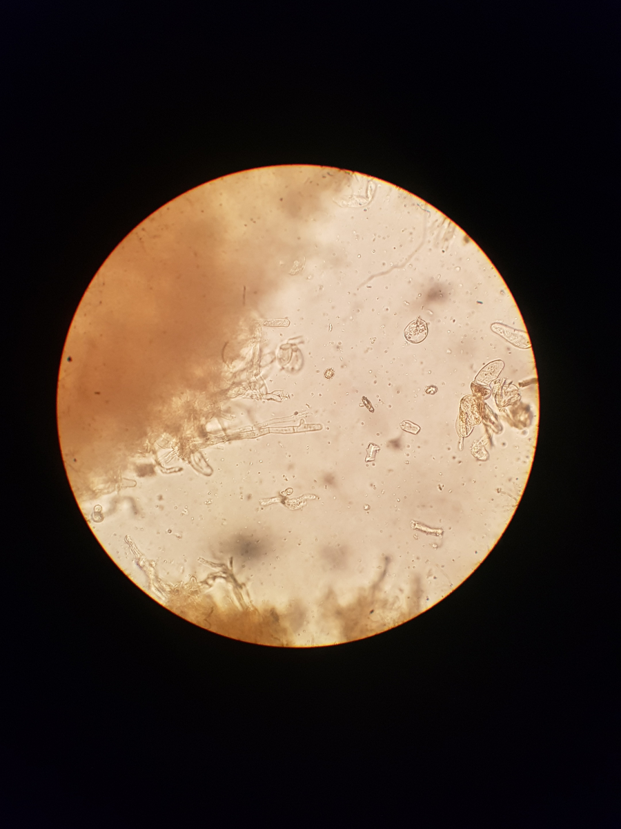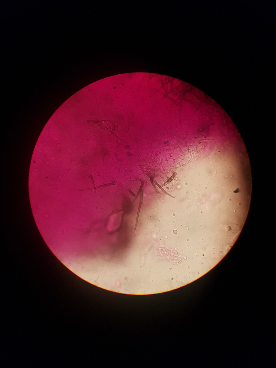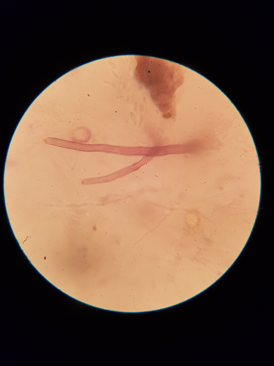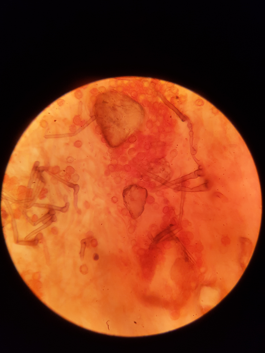 11. und zum Schluss habe ich noch sowas in der Huthaut gefunden. Ich bin echt überfragt, da ich vier Strukturen ausmachen würde. Die blasenförmigen, die keulenförmigen, die Pileozystidien? und folgende:
