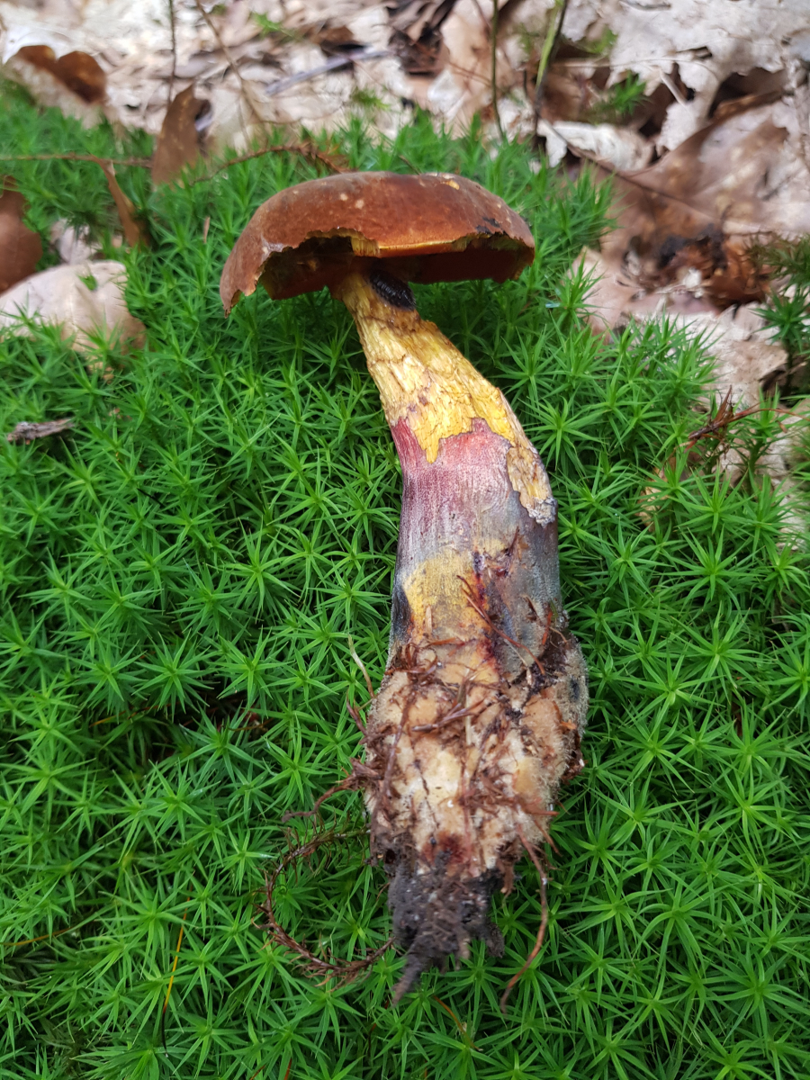 Im gleichen Stück unter Fichten, habe ich nicht nur die ersten Pfifferlinge des Jahres gefunden, nein, auch einen Goldröhrling und einen Flockenstieligen Hexenröhrling