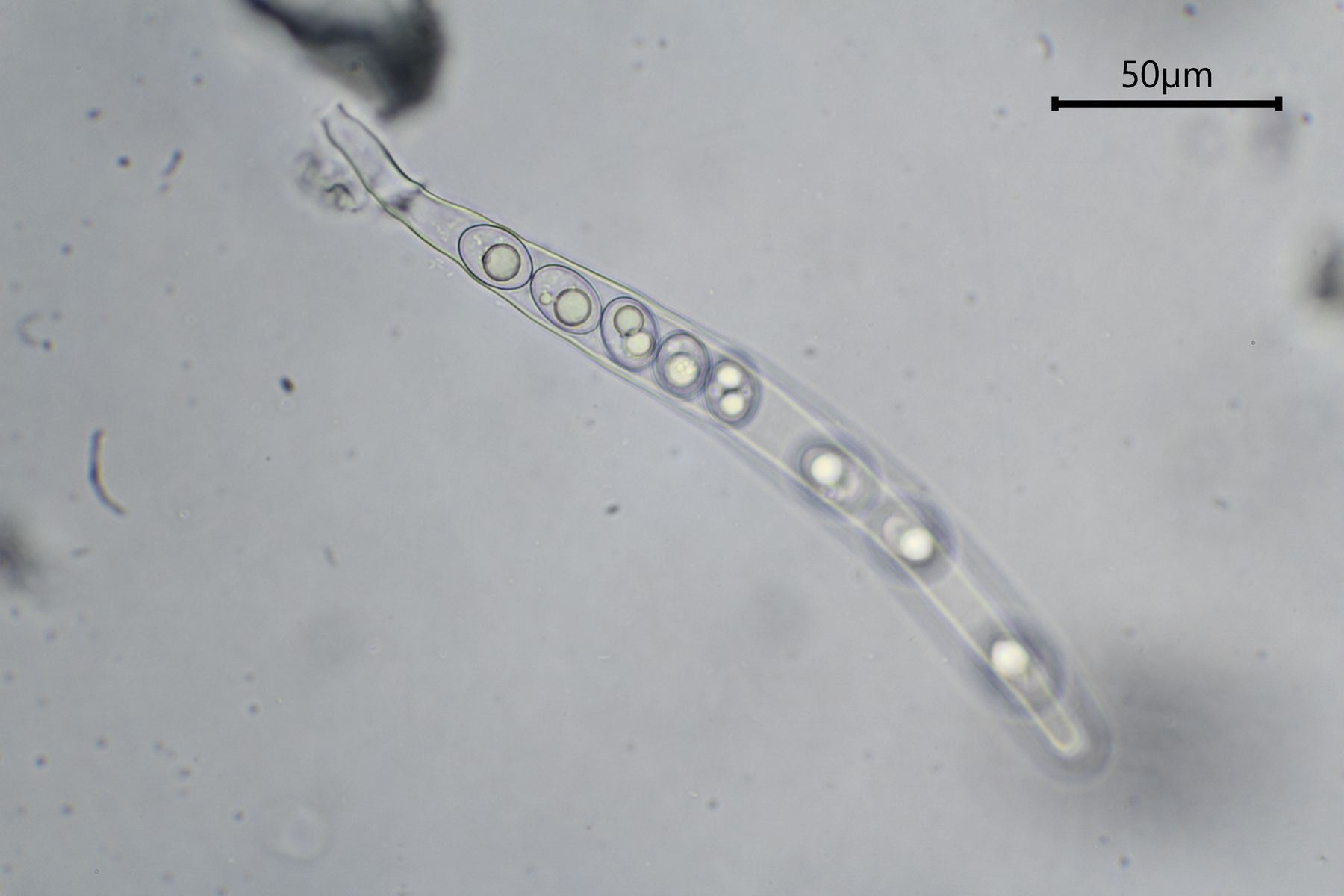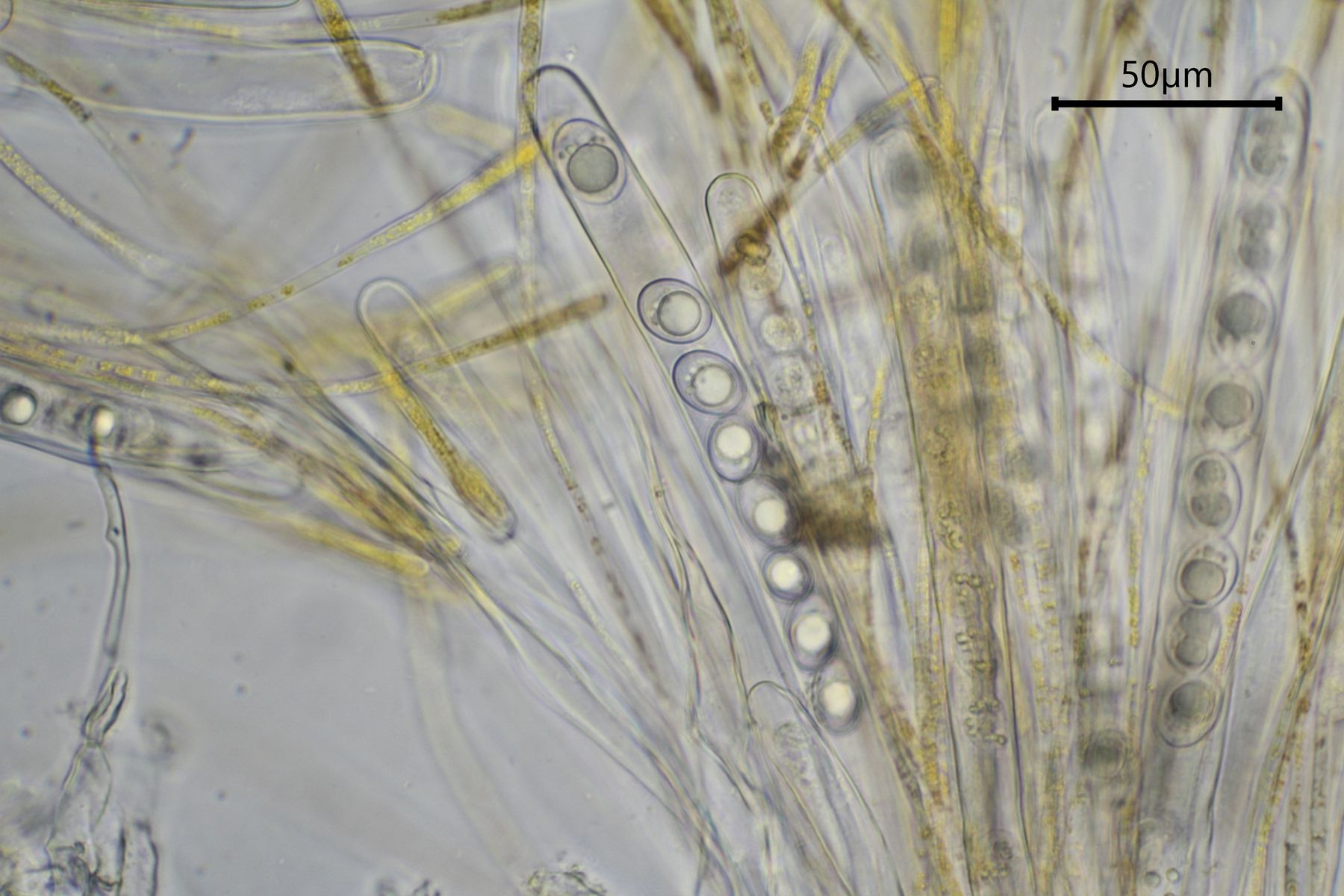 Sporen: 14-15 x 19-20 (überwiegend in den Ascis gemessen, ein Becherling liegt zum Ausporen aus