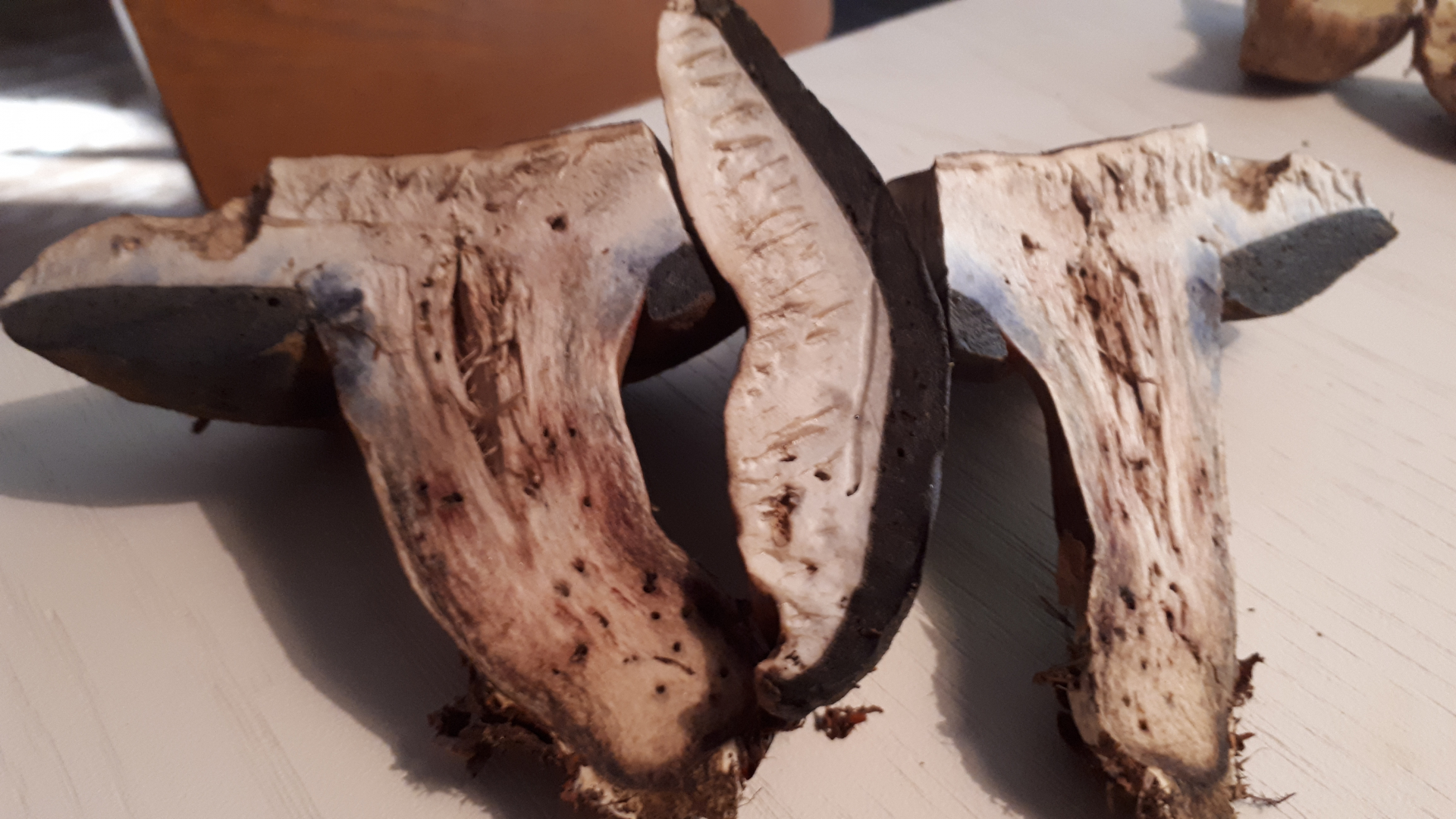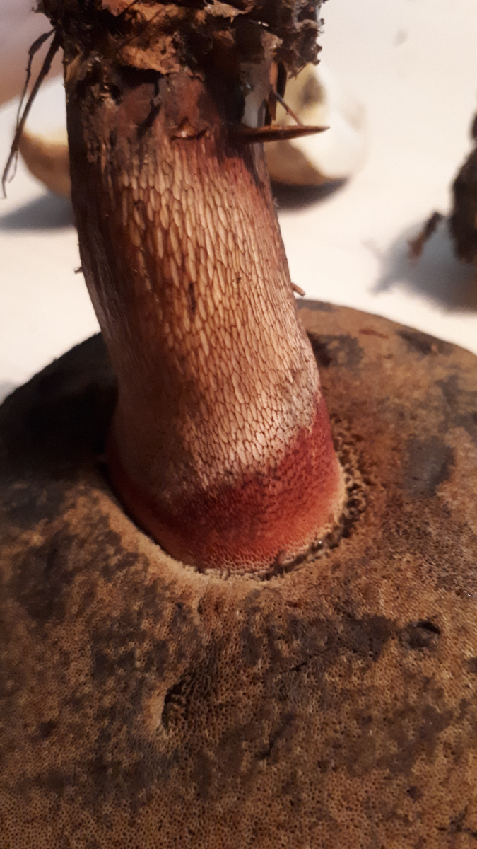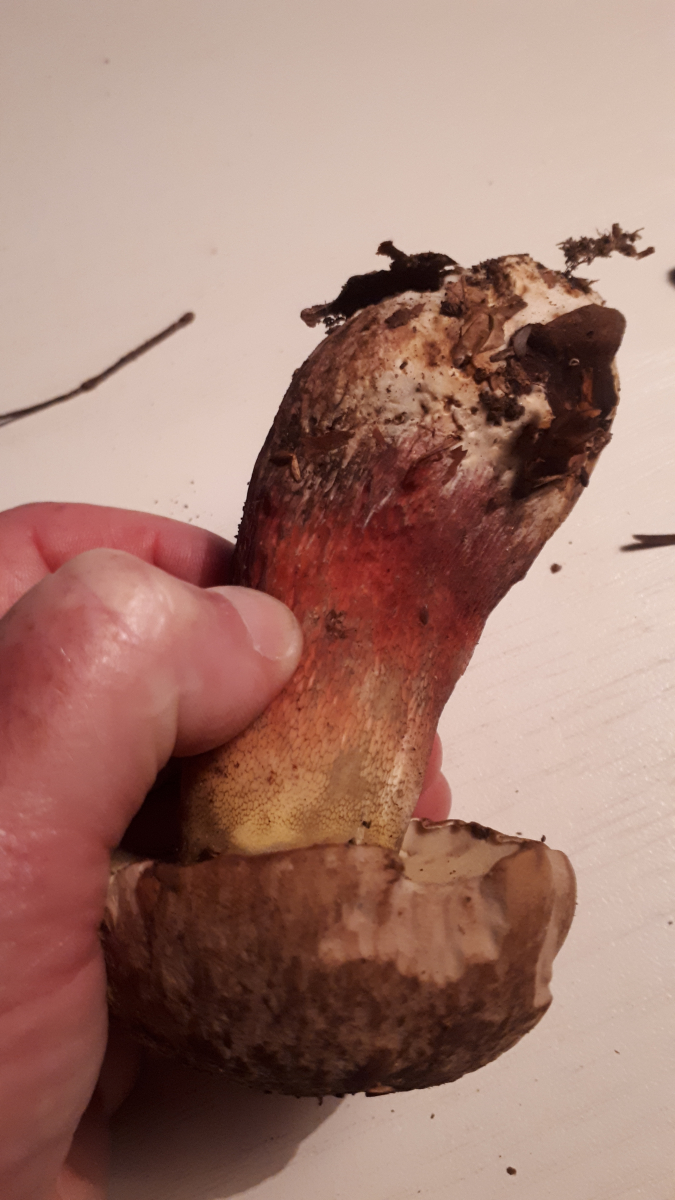 Hallo in die Runde, ich war bisher nur stiller, aber begeisterter Mitleser und wollte hier mal meinen ersten "Fall" vorstellen. Was mich verwirrt, ist die rote Farbe am Stiel direkt unter dem Hut und dass er beim Anschnitt nur gaaaanz leicht blaut. Wäre toll, wenn mir jemand helfen könnte. Ich hoffe, die Bildqualität ist ausreichend, außerdem hatte ich ihn schon angeschnitten, bevor ich vorhatte, ihn hier einzustellen...