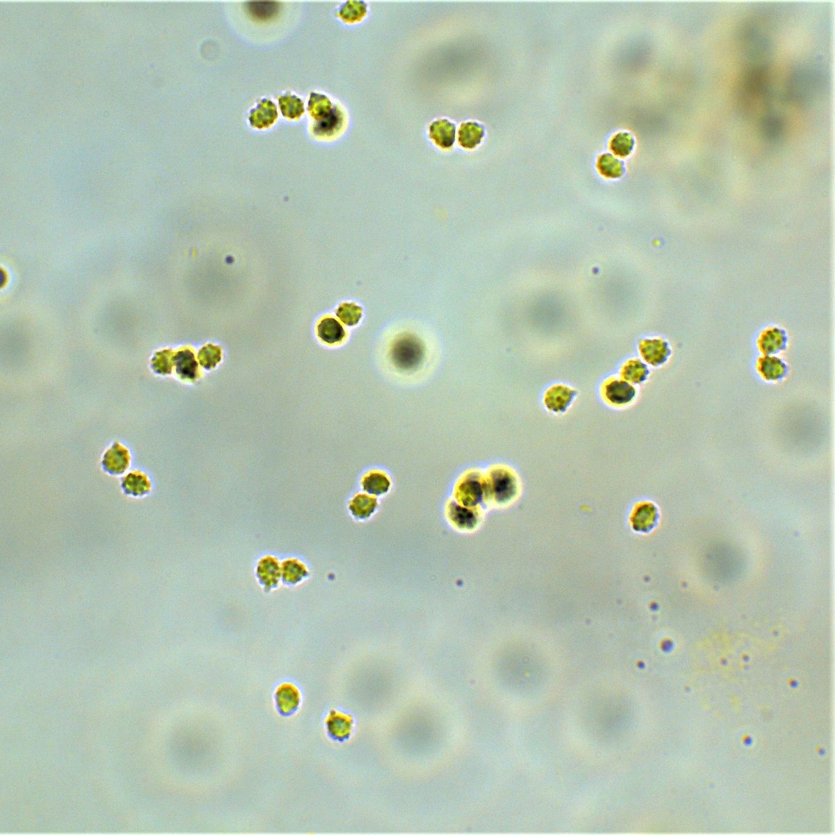 rundliche bis Birnenförmige bräunliche Zellen, manche Spitzen sahen aus wie Zitronen,