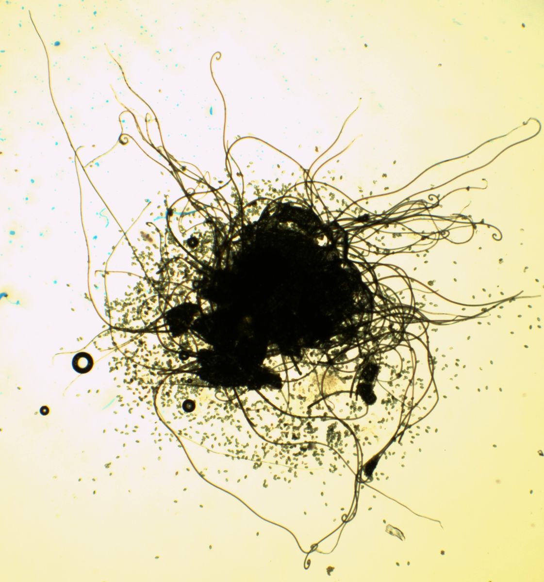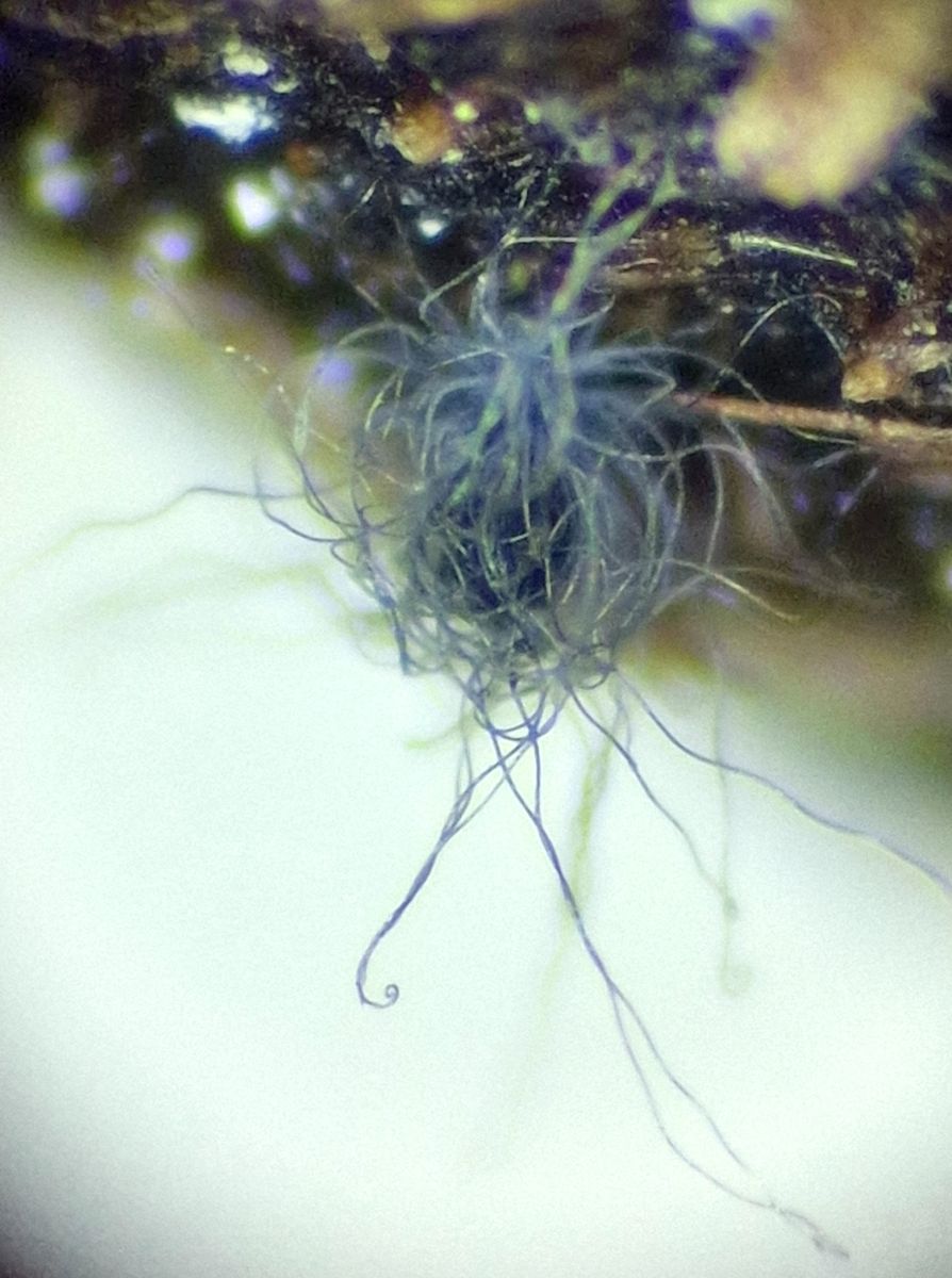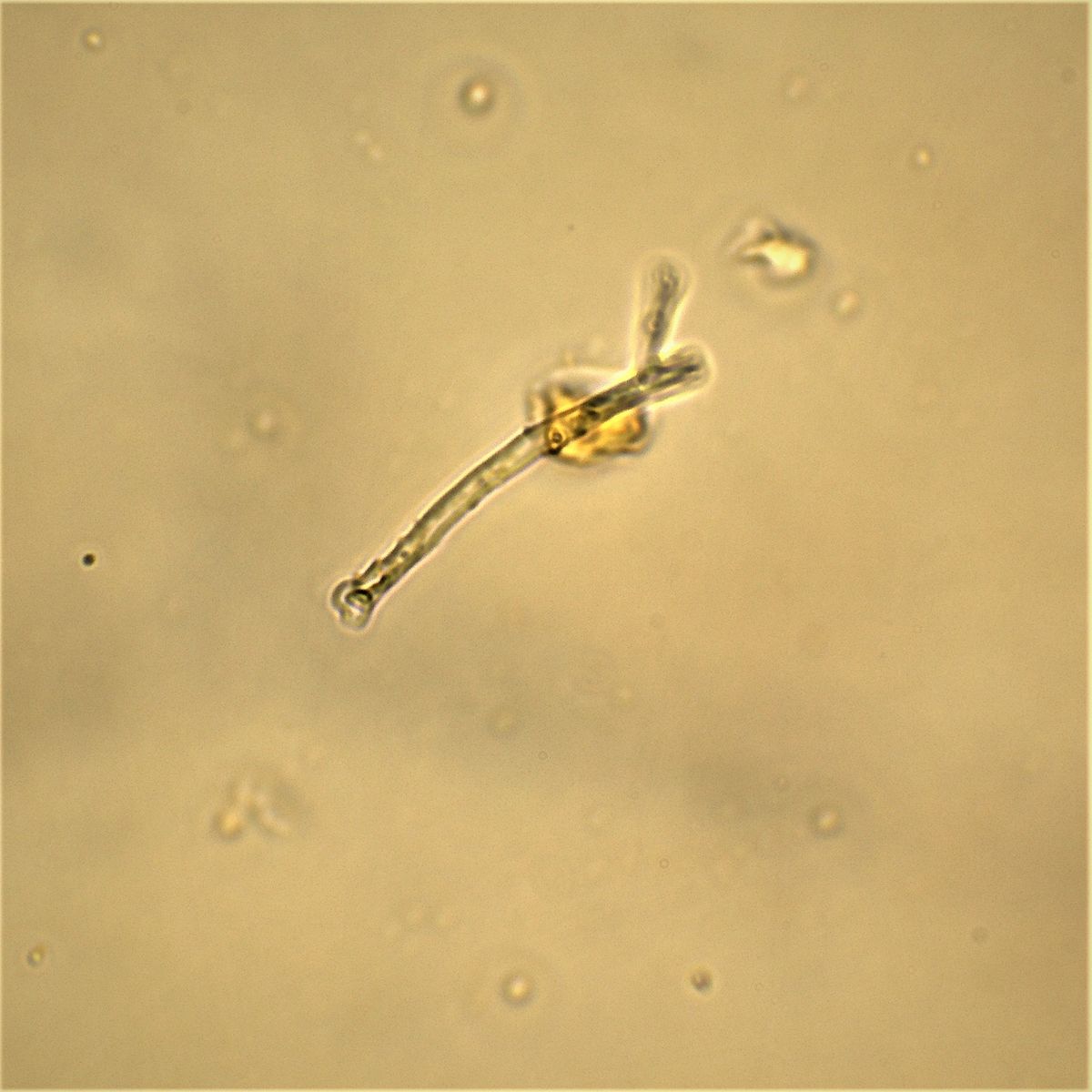 zu Beginn sind diese mit kleinen, kurzen büscheligen Strukturen, über die Länge mehrfach septiert und zur Spitze zu werden sie glatt und enden in einen gekrümmten Haken