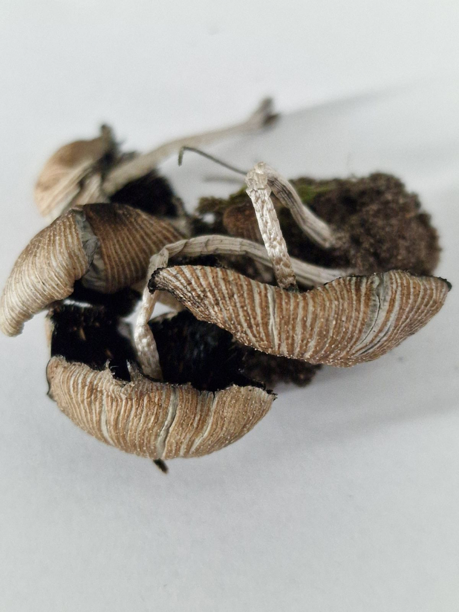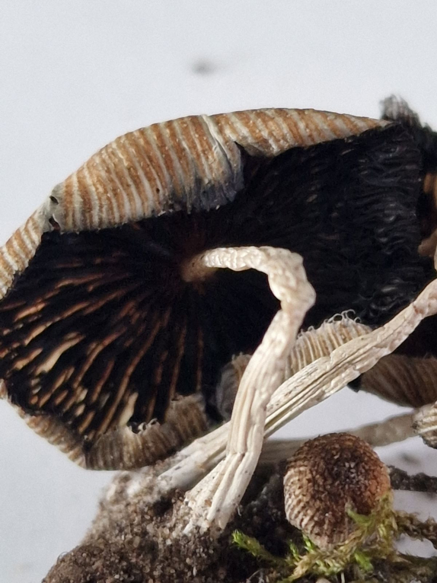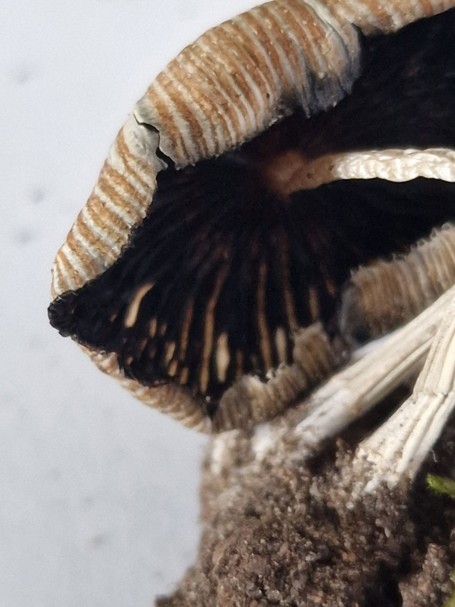 gestern Abend hatten wir zu unserem Stammtisch eine Tintlings-Art auf unserem Tisch, die in einer kleinen Gruppe gewachsen ist . Standort war Wiese direkt auf Erde. Der Tintling verwelkt statt zu zerfließen. Der Hut bis 3cm im Durchmesser, hat eine dunklere bräunliche Mitte, mit kleineren helleren Flöckchen, und ist bis dorthin tiefer gefurcht gerillt. Die Lamellen sind schon recht dunkel schwarzbraun und sind zum Stiel eher angeheftet statt einem Kollar. Der Stiel bis 4 cm lang, ist längs-gerillt ob das von der Trockenheit her rührt weiß ich nicht, die Stielbasis ist etwas verdickt. Mikroskopisch hatte ich ein paar Aufnahmen gemacht, vielleicht kann man ihn noch bestimmen, vielen Dank dafür.