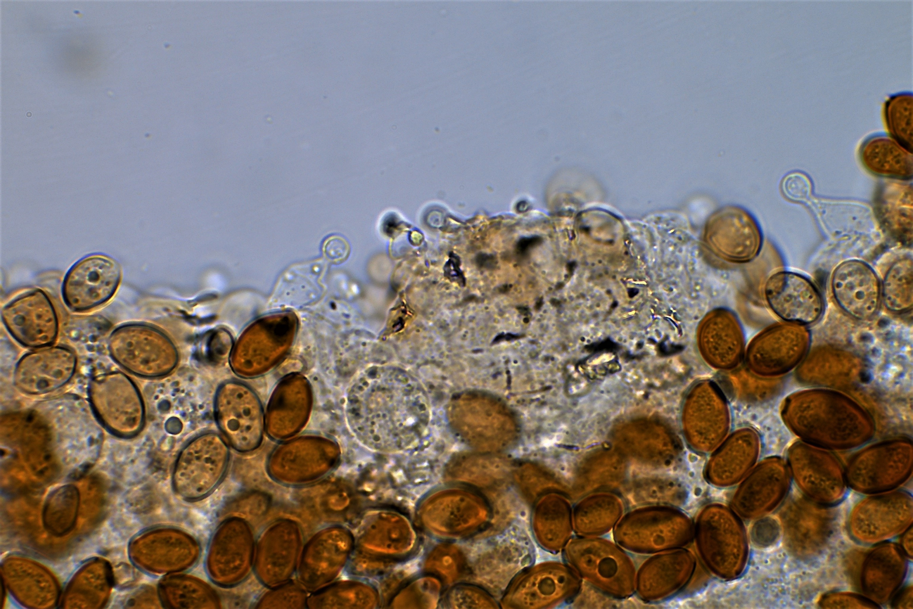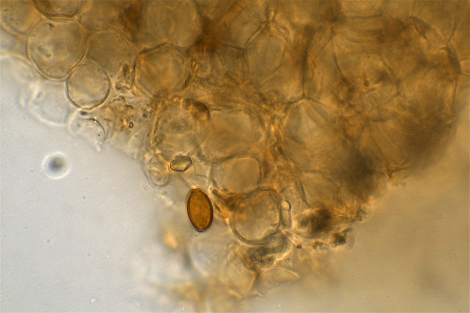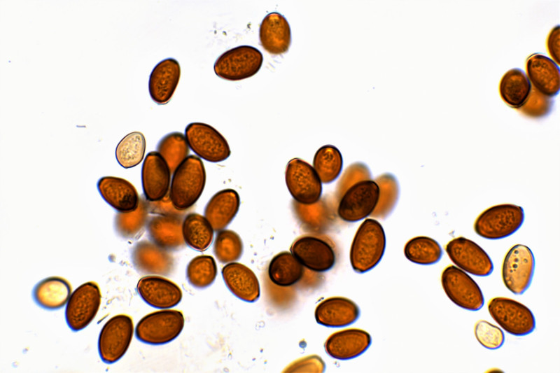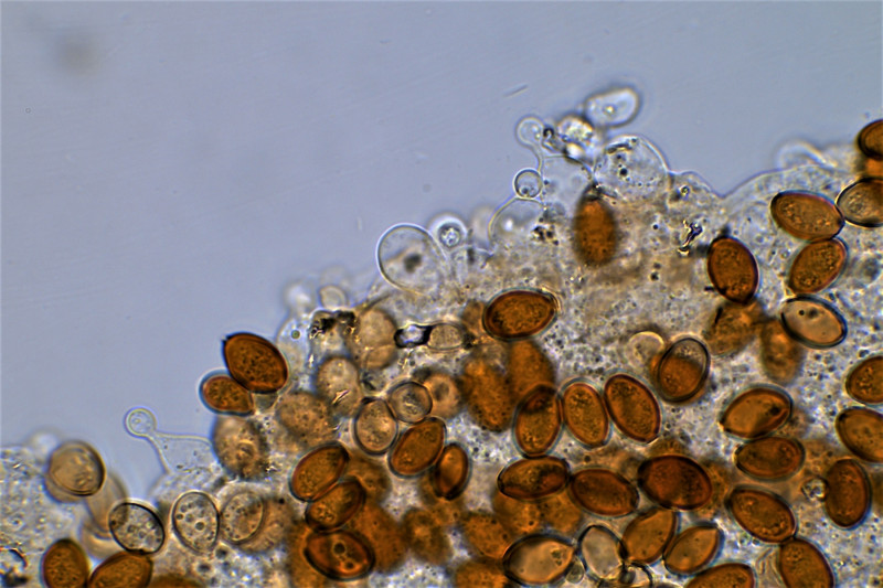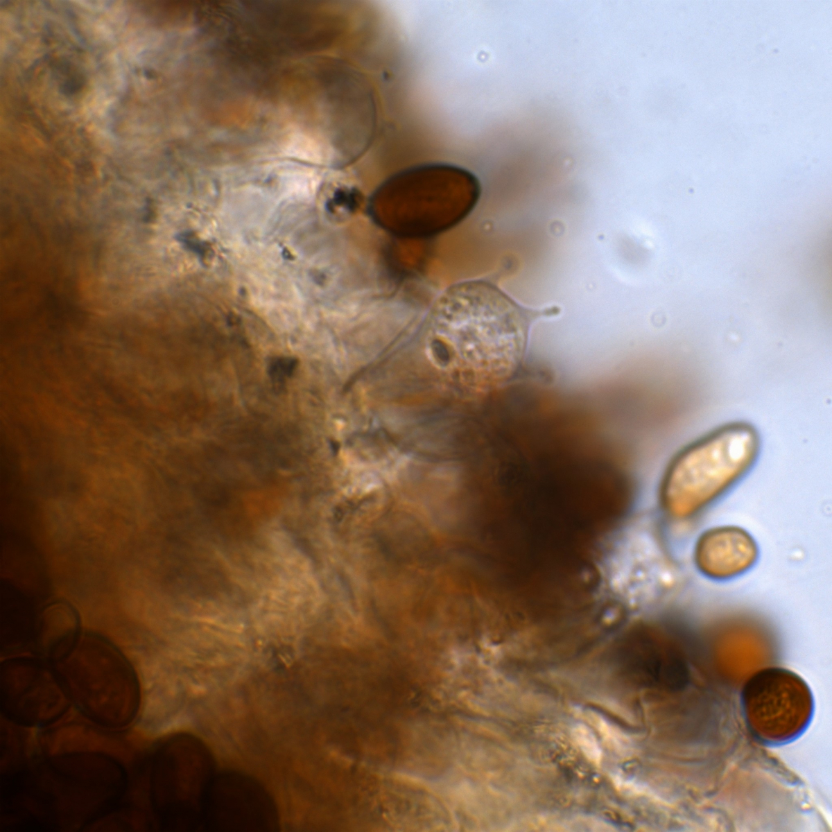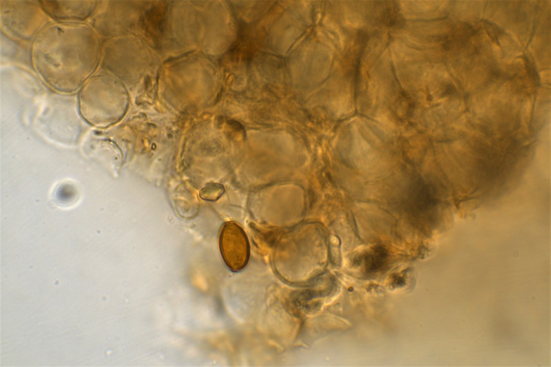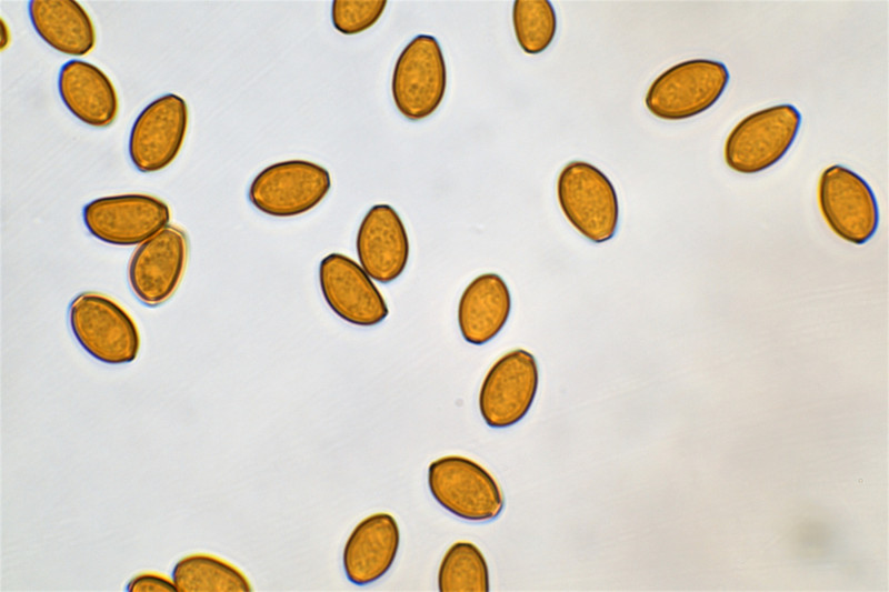Die Sporen sind elliptisch, glatt, hyalin mit einem großen Tropfen
