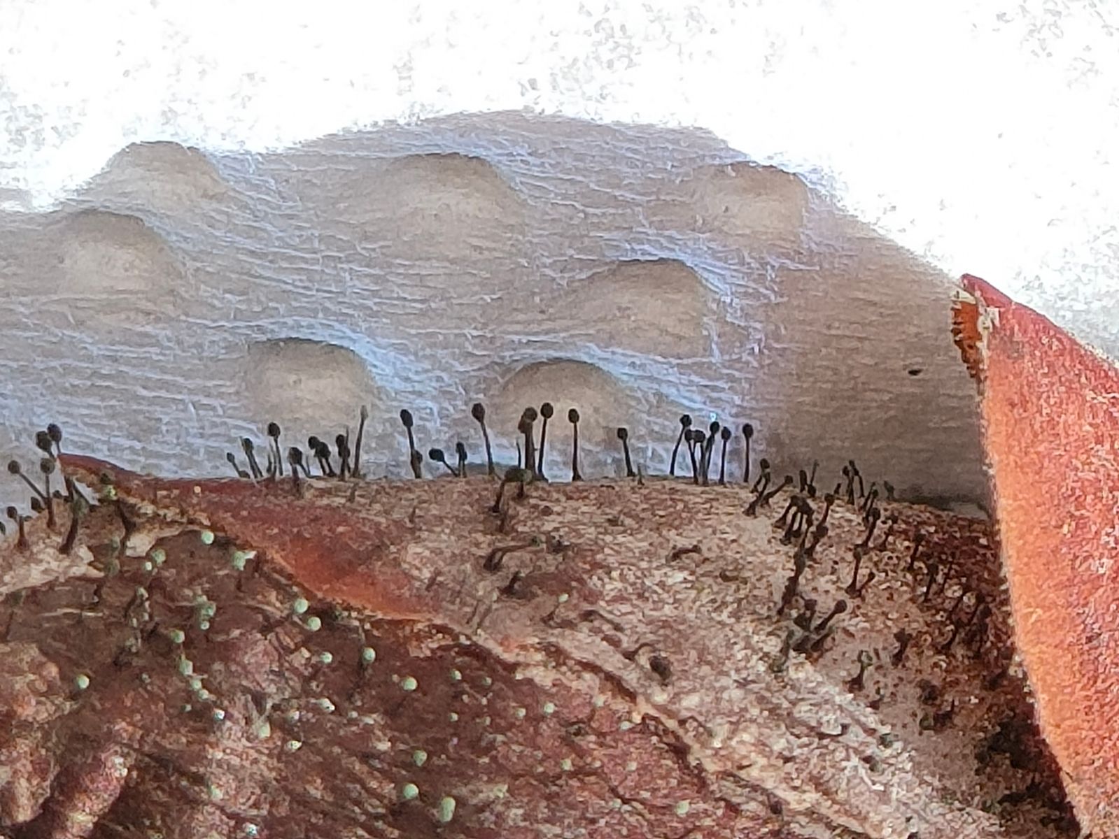 Was die Sporenfarbe angeht, waren sie eher Rosa/braun, wie sie frisch waren.