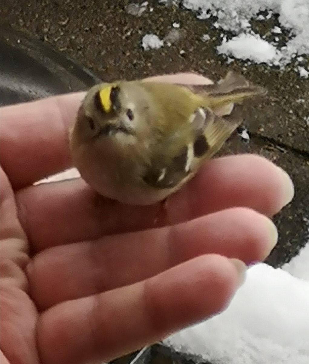 ich traute meinen Augen kaum, als ein Wintergoldhähnchen sich bei dem Schneetreiben es sich