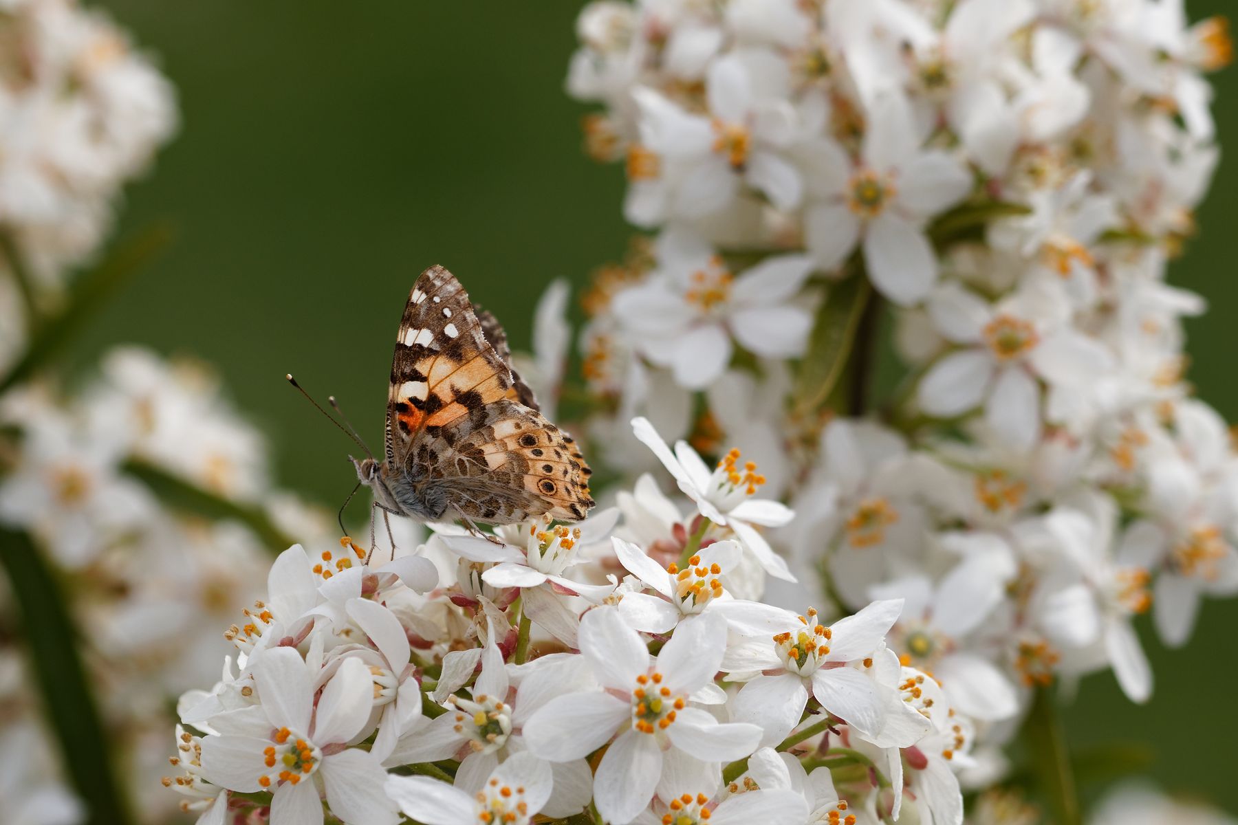 Zuerst flatterte ein Distelfalter (Vanessa cardui) herum und "tankte" sich so richtig voll.