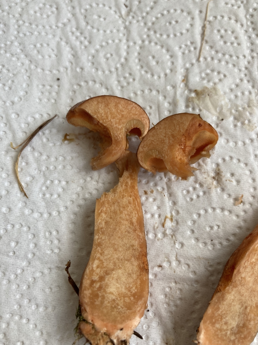 Die stark herablaufenden Lamellen,der trichterförmige Habitus und die fehlende Schmierigkeit des Hutes(Ich hatte heute auch andere Schnecklinge in der Hand, welche da typisch ausgeprägt waren) sind aber schon merkwürdig…