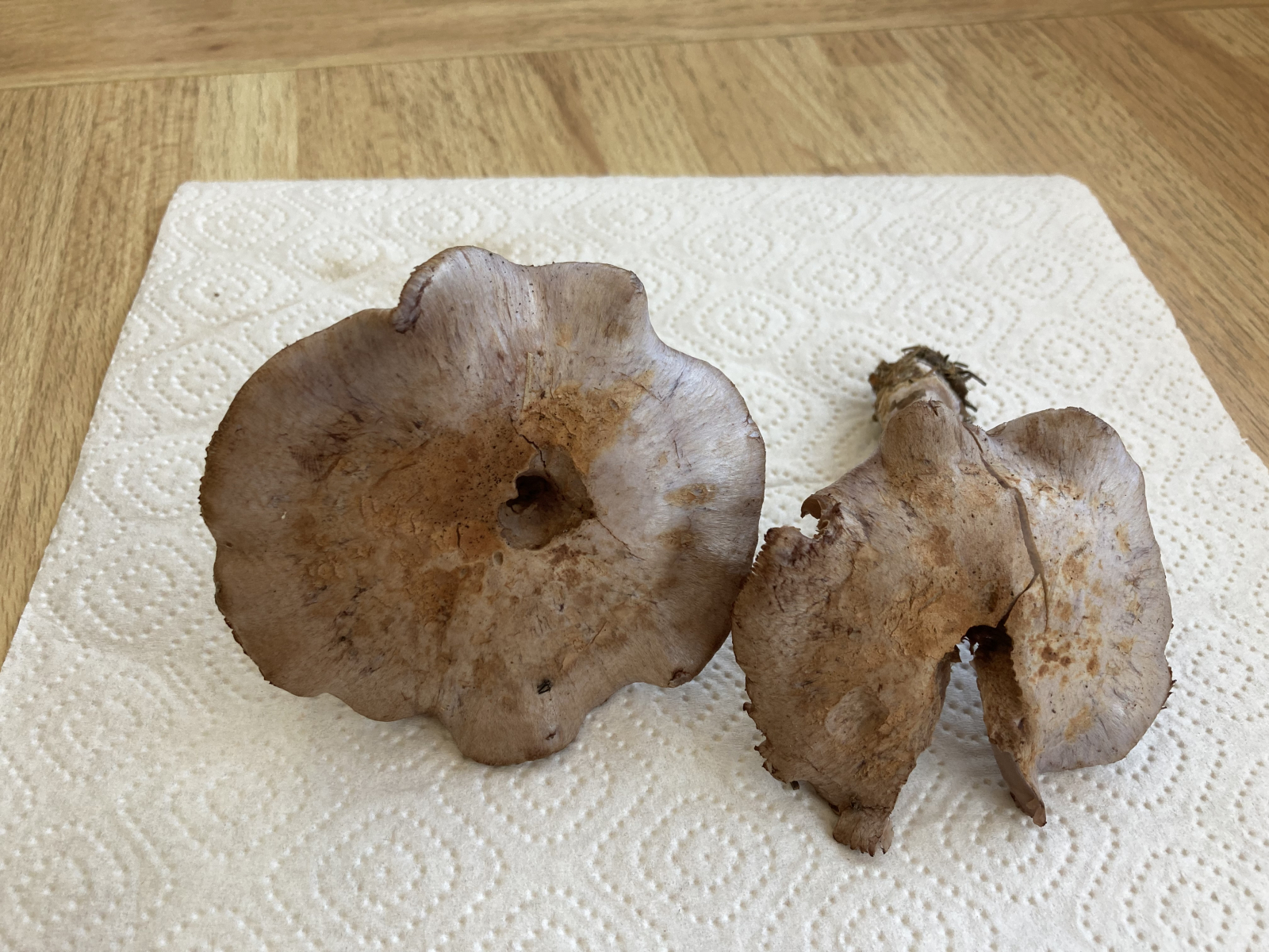 Die Lamellen sind rostbraun mit einem Hauch orange und die Schneiden sind heller(gelblich). Ausserdem sind die Schneiden etwas gewellt. Zwischenlamellen sind auch vorhanden.