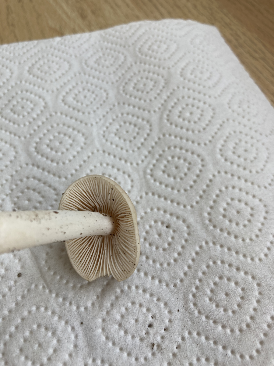 Ich habe den Test mit Spiritus und Papiertuch zur Unterscheidung Hautkopf/Raukopf gemacht und es verfärbte sich gelb, also wird es wahrscheinlich ein Hautkopf sein…