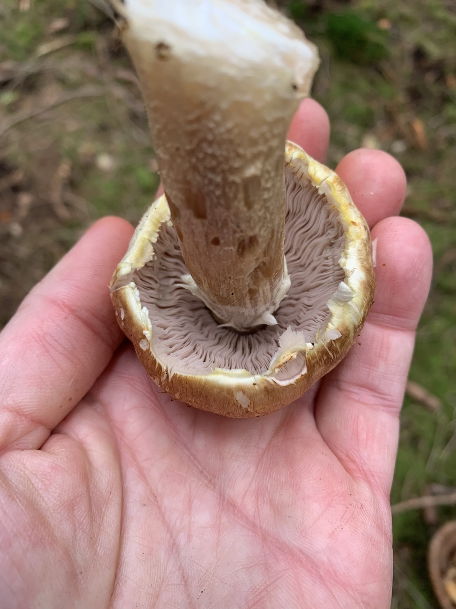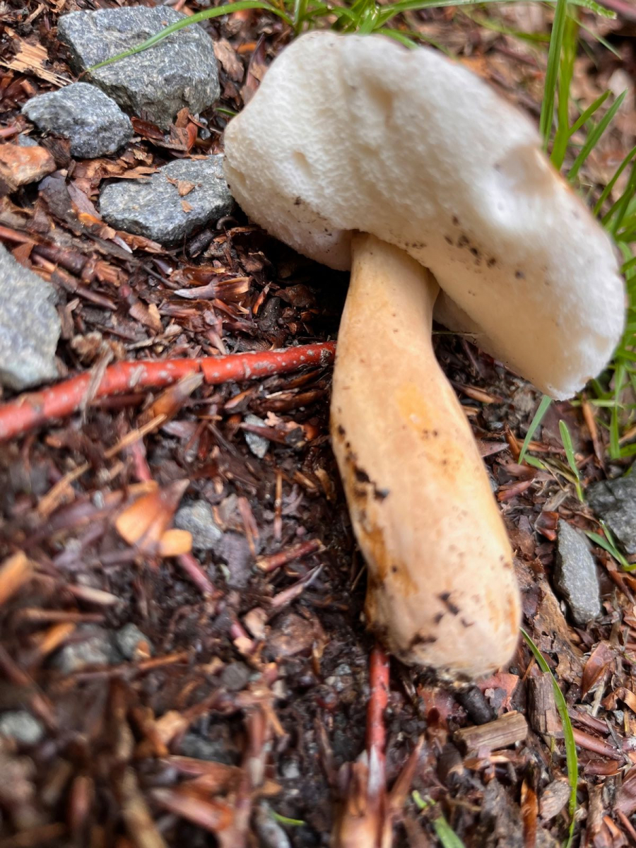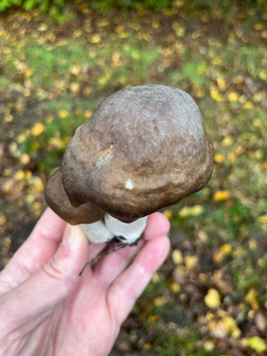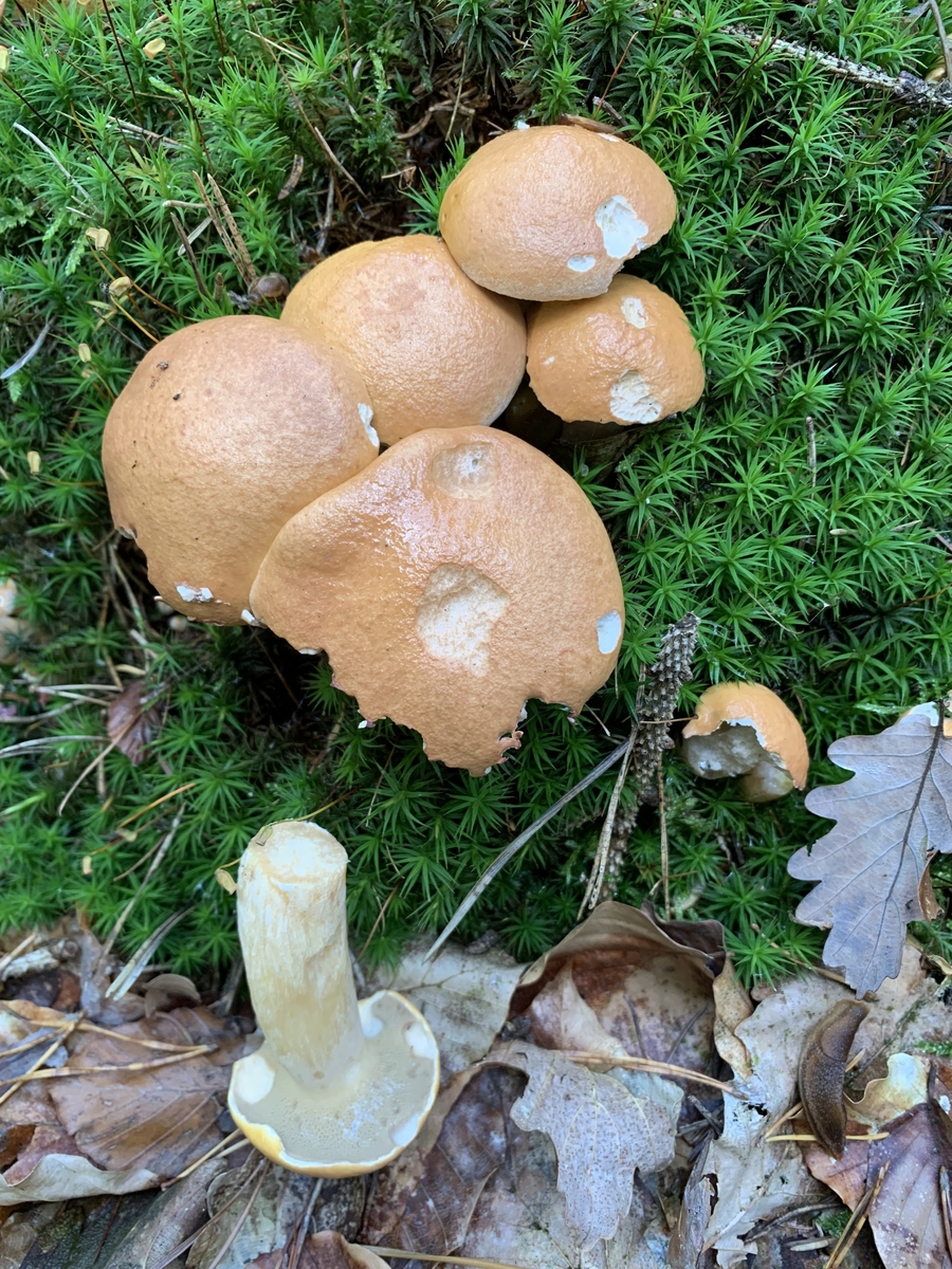 4) Hainbuchen-Raufuss könnte evtl. auch stimmen, aber die Hüte waren schon sehr blass. Kenne die nur mit wesentlich dunklerem Hut. Dachte es ist vielleicht etwas exotischeres, da sie unter irgendwelchen asiatischen Bäumen wuchsen. Gebläut beim Anschnitt (=Durchbruch) hat er jedenfalls nicht.