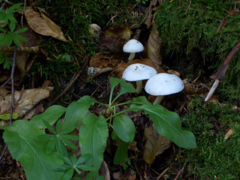 Höhe: ca. 7-8 cm, Stiel: weiß, Hutfarbe: weiß, Standort: Laubwald