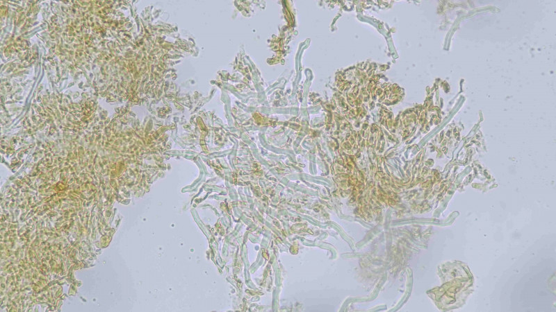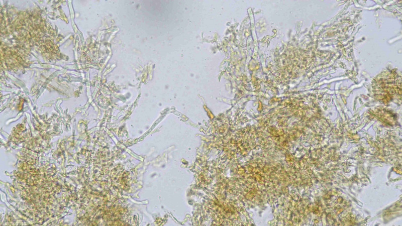 In melzer reagenz aber I glaub ohne Reaktion und Sporenmaße. Aja und das eine Bild müsste doch ein dimitisches hyphensystem darstellen oder lg