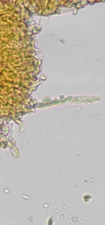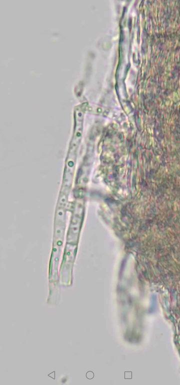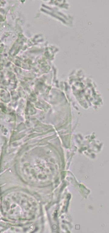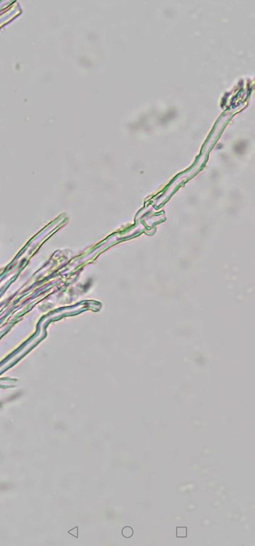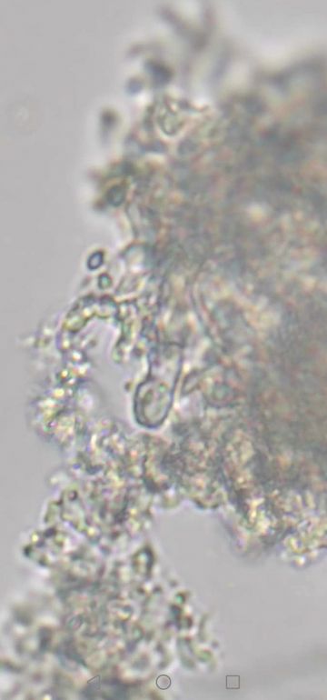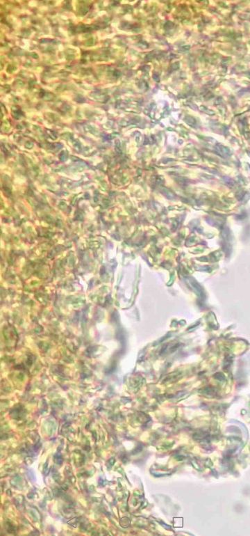 Du sagst dimitisch, aber ich erkenne keine Skeletthyphen bei deinen Fotos, nur etwas skelettisierte, normale (= generative) Hyphen. Ich sehe eine Schnalle - das Hyphensystem ist also monomitisch mit Schnallen? Wie kommst du auf Ceriporiopsis pseudogilvescens, mit welcher Literatur hast du die Bestimmung versucht?