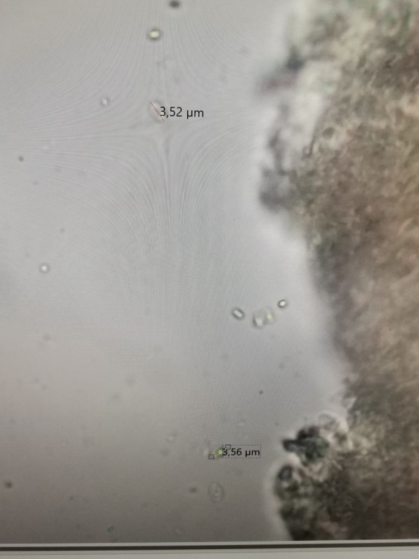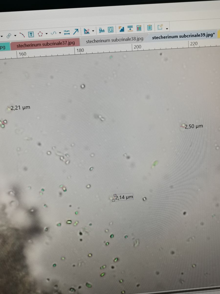 Wenn du Sporen anschaust, magst du vielleicht angeben, was du an Maßen herausbekommen hast. Also so klassisch von bis und mit Mittelwerten?! Und Angabe, wie viele du vermessen hast. (Ja, man kann ein paar Sporen mit Maßen sehen, aber das sind keine herausgearbeiteten Sporenmaße in ihrer Schwankungsbreite)