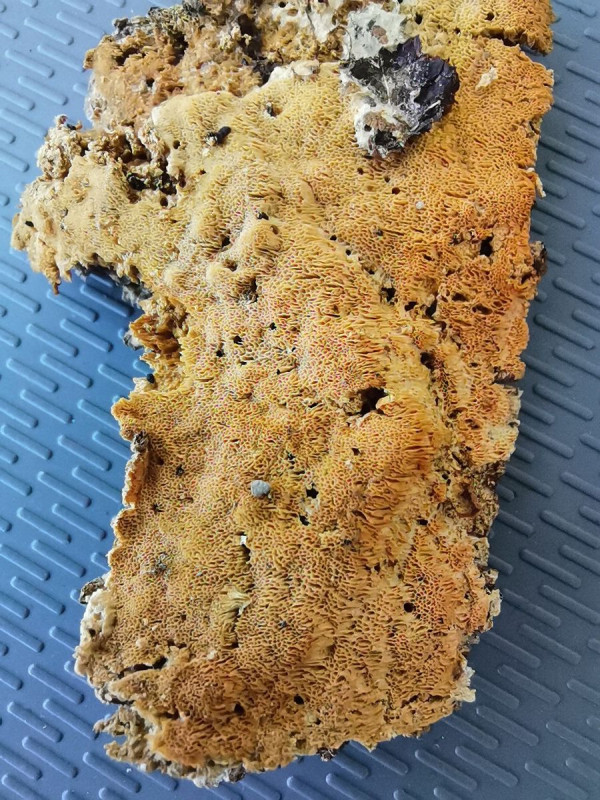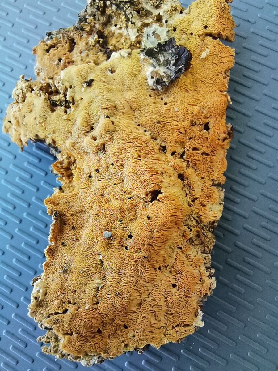 du machst es einem nicht einfach mit deinen Anfragen. Bei Porlingen sind ein paar Informationen einfach hilfreich. So z.B., wie viele Poren pro Millimeter er hat, mehrjährig oder einjährig, ob das Holz an der Anwuchsstelle braun- oder weißfaul ist, ob du Rhizomorphen am Fruchtkörperrand oder im Holz gesehen hast, vielleicht noch Geruch und Geschmack...