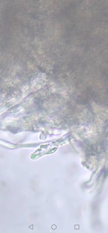 Dieser Pilz, den ich gefunden habe, hatte eine klebrige Oberfläche auf seinem Hut ( klebrige Huthaut ). Wie man auf dem Bild sieht, klebte alles daran fest: Blätter, Zweige und trockenes Gras. Selbst starker Sekundenkleber hielt nicht so gut wie diese Huthaut .Als ich diesen Pilz fand, war es ein sonniger, warmer Tag, es hatte seit drei Tagen nicht geregnet und der Huthaut war immer noch klebrig.