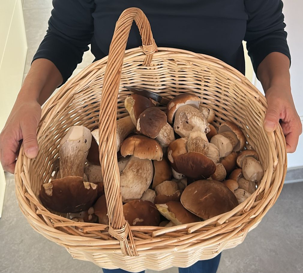 Ich habe meine Mutter mit in den Wald (eigentlich war es der Waldrand am Feldweg) genommen... sie war ganz verblüfft und hätte die Steinpilze eher tief im Wald vermutet...