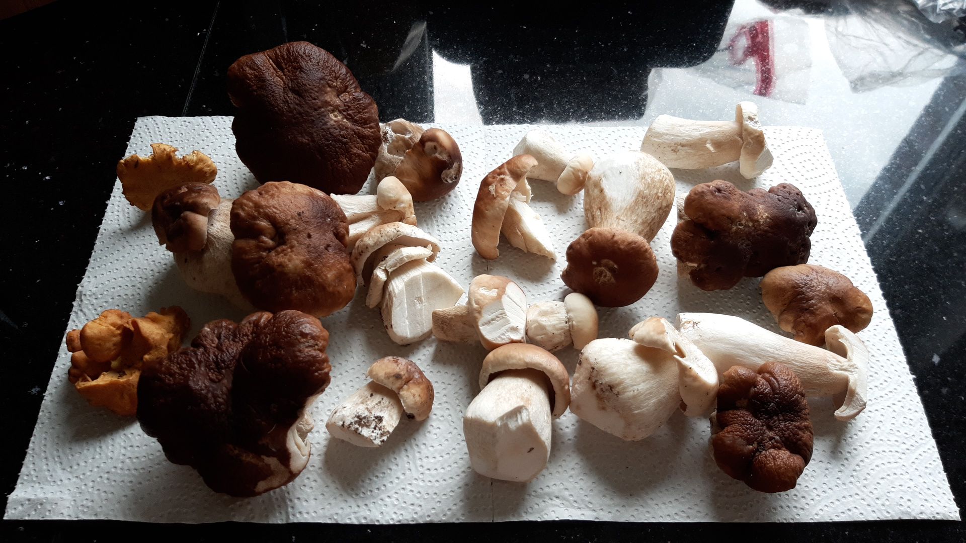 Letzte Woche war sogar eine Krause Glucke dabei ... Gallis gibt es momentan in Massen... Maronen nur vereinzelt (auf Moos wo es noch feucht ist).