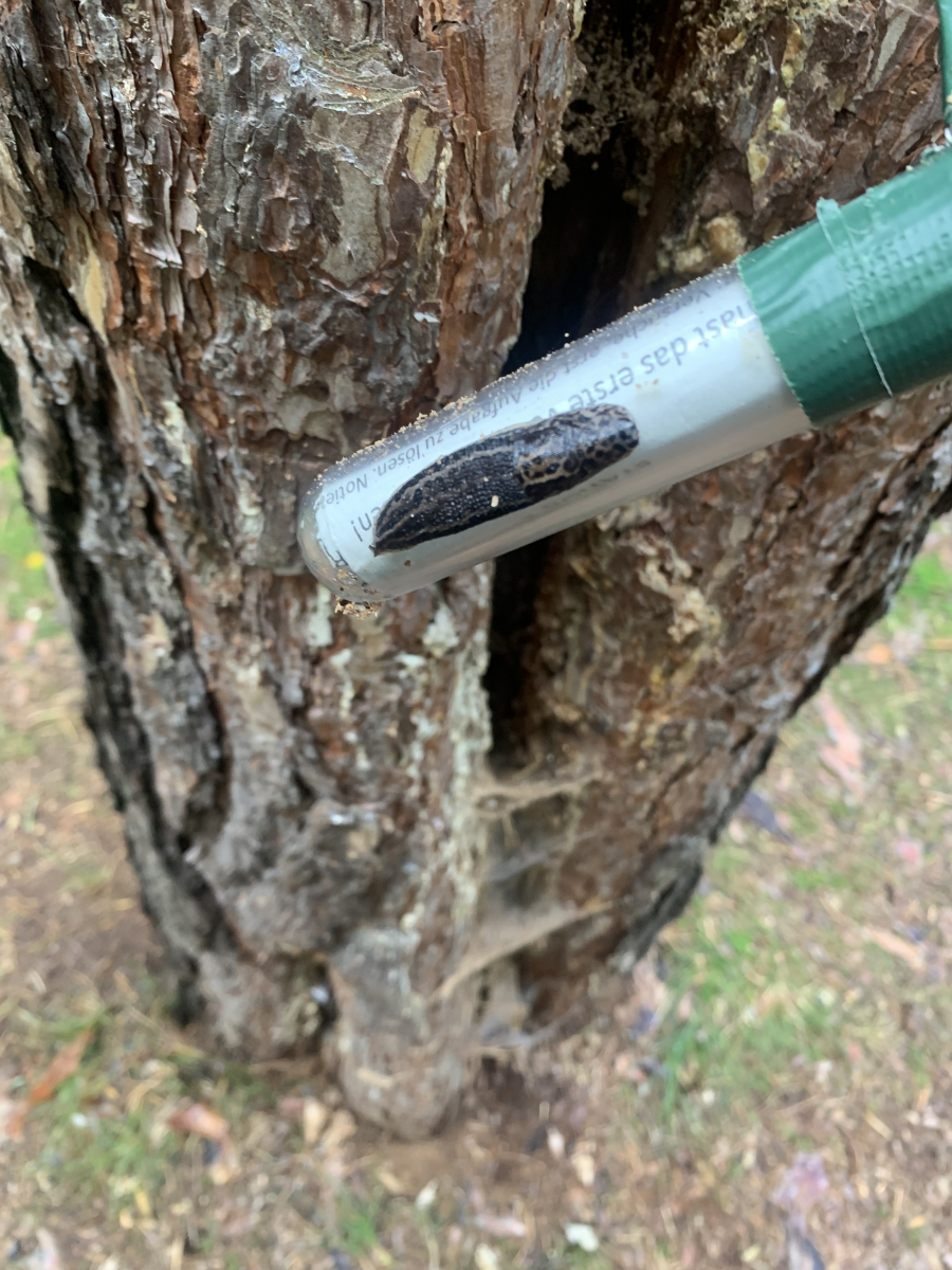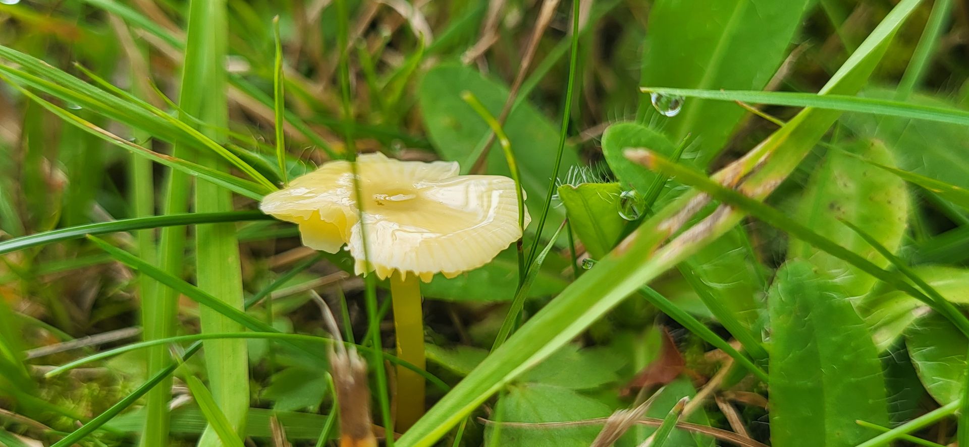 Den schwärzenden Saftling habe ich auch noch vor dem Haus entdecken können, auf einer Fläche zwischen 2 Eingängen, die für den Mähroboter nicht erreichbar sind. Dieses Monster wurde erst dieses Jahr von der Hausverwaltung angeschafft.