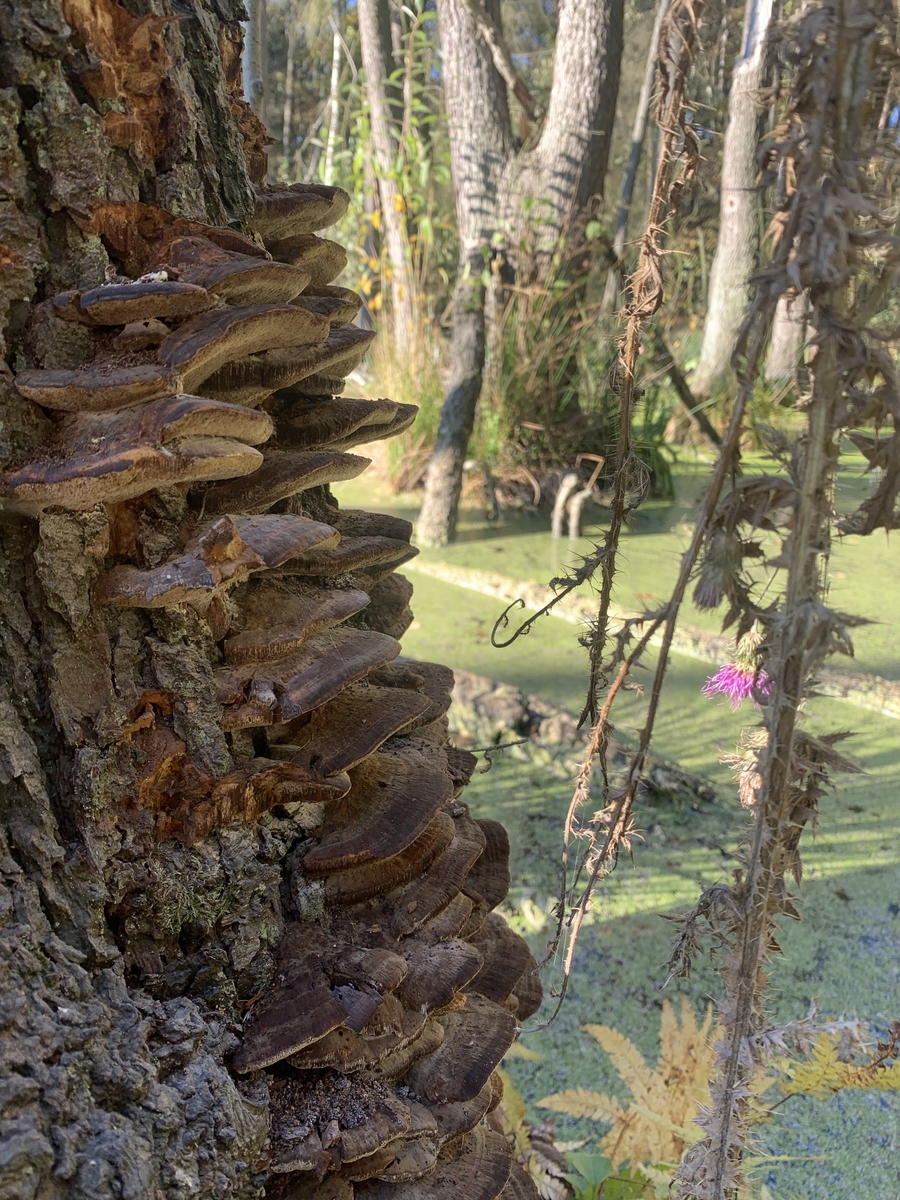 Es fährt über 12h täglich!!! auf einer Fläche von vielleicht 600qm. Das ist absoluter Irrsinn!! Der Rasen wurde auch vorher gemäht, von Menschen, aber das nur einmal im Monat. Hinter dem Wäscheplatz befinden sich kleine Gartenflächen, die den Bewohnern gehören. Dazwischen stehen riesige Birken und Tannen. Hier haben sich auch viele Mykorrhizapilze etabliert, meine Mutter sammelte seit Jahren Birken- und Perlpilze, ich habe Filzröhrlinge, Fliegenpilze, winzige Schirmlinge, Kremplinge und verschiedene Täublinge entdeckt. Und wer weiß, was ich alles übersehen hab. Von so einer Artenvielfalt auf so kleiner Fläche kann ich in meinen gewöhnten Brandenburger Wäldern nur träumen...