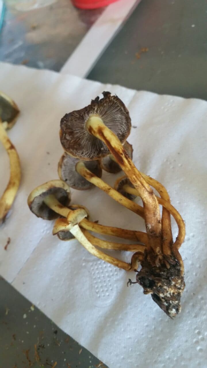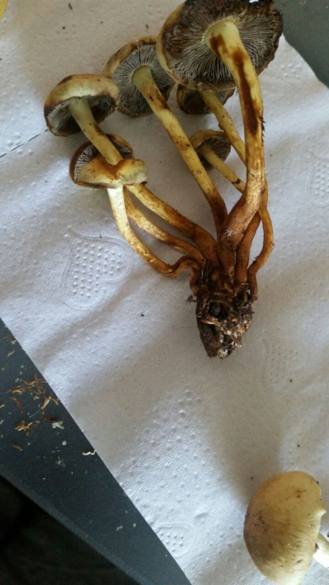 Als Neuankömmling in diesem schönen Forum erstmal einen schönen guten Tag. In der letzten Zeit interessiere ich mich stark fürs Pilze sammeln und bin überaus fasziniert davon. So machte ich dann letztes Wochenende einen ersten Ausflug in den Wald, in der Hoffnung vielleicht soetwas wie Steinpilze oder Maronen zu finden. Leider war der Waldboden allerdings zu großen Teilen übersäht mit Brombeeren, was die ganze Sache doch einigermaßen schwer gemacht hat, an den Stellen an denen man etwas sehen konnte, konnte man aber in erster Linie diese merkwürdigen dicken Kugeln finden, die ich dann später als Bovisten identifizierte. Einige andere Pilze konnte ich noch sehen, allerdings keinen identifizieren. Nun seitdem habe ich mich noch etwas mehr informiert und noch einige Videos angeschaut. Würde ich nochmal in den Wald gehen, könnte ich wohl zumindest bei einigen Pilzen Vermutungen äußern, da mir zumindest grob bekannt ist, was Täublinge sind(von denen ich glaube einige gesehen zu haben). Gestern bin ich also mit dem Hund durch unseren Stadtwald gelaufen, und bin auf die Pilze hier gestoßen. In einer ersten Euphorie dachte ich natürlich Stockschwämmchen gefunden zu haben, nachdem ich zuhause dann aber nochmal recherchiert habe, ist mir aufgefallen, dass das doch gar nicht so einfach ist. Mittlerweile sind meine ehesten Tipps grünblättriger oder rauchblättriger Schwefelkopf. Ob die Lamellen grünlich/gelblich verfärbt sind, kann ich leider nicht sagen, da fehlt mir wohl die Erfahrung. Allerdings lässt mich daran Zweifeln, dass sie so dunkle Ringe um den Stiel tragen bzw. getragen haben, wie auf dem etwas verschwommenen Foto noch erkennbar sein sollte. Diese habe ich sonst bei Fotos von Schwefelköpfen allerdings nicht entdecken können. Bei Stockschwämmchen allerdings, ist soweit ich das nun richtig verstanden habe, der Stiel allerdings gerne mal etwas geschuppt, was bei den Pilzen hier einfach überhaupt nicht der Fall ist. Für das Gifthäubchen allerdings fehlen allerdings würde ich behaupten das graue Netz, weiter unten am Stiel(insofern das überhaupt immer Grau ist, und nicht vielleicht auch mal etwas Rot?). Also lange Rede kurzer Sinn: Leider kann ich nicht wirklich sagen, worum es sich hier handelt, vielleicht kriegt das ja jemand von euch hin