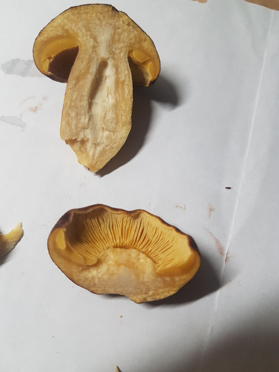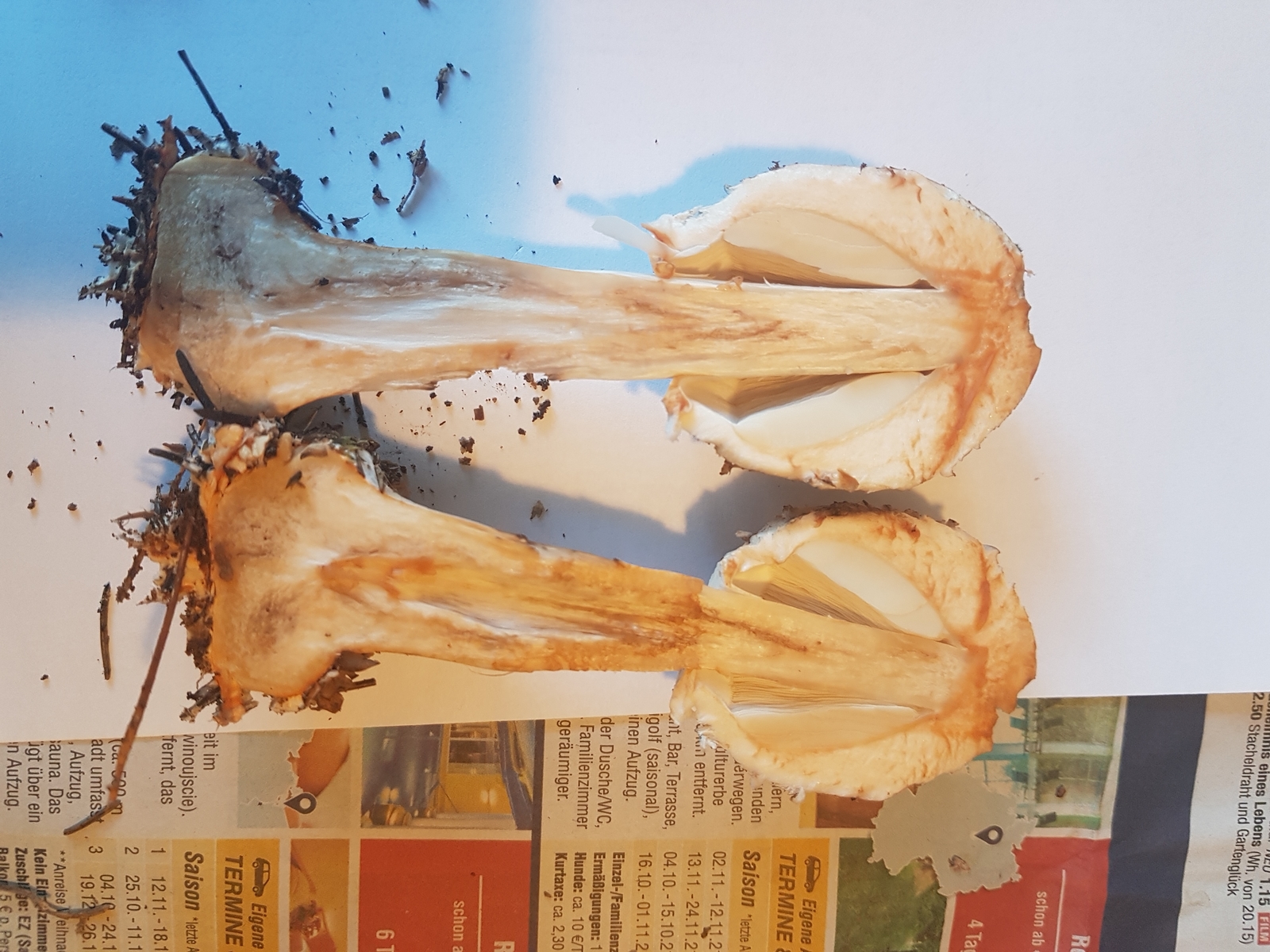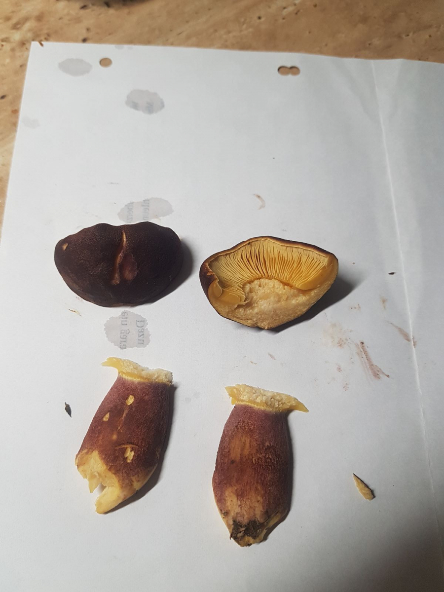 Danke für euren Input. Ich habe zunächst nicht an den Rötlichen Holzritterling geglaubt, da ich den Hut einfach nur als tiefbraun und nicht als rötlich bezeichnen würde. Aber beim näheren Blick auf die Täler in der Hutoberfläche erkenne ich ein purpurrot. Calocybe onychina habe ich auch mal gegoogelt, aber ehrlich gesagt sehe ich mehr Ähnlichkeiten mit Trichlomopsis rutilans.